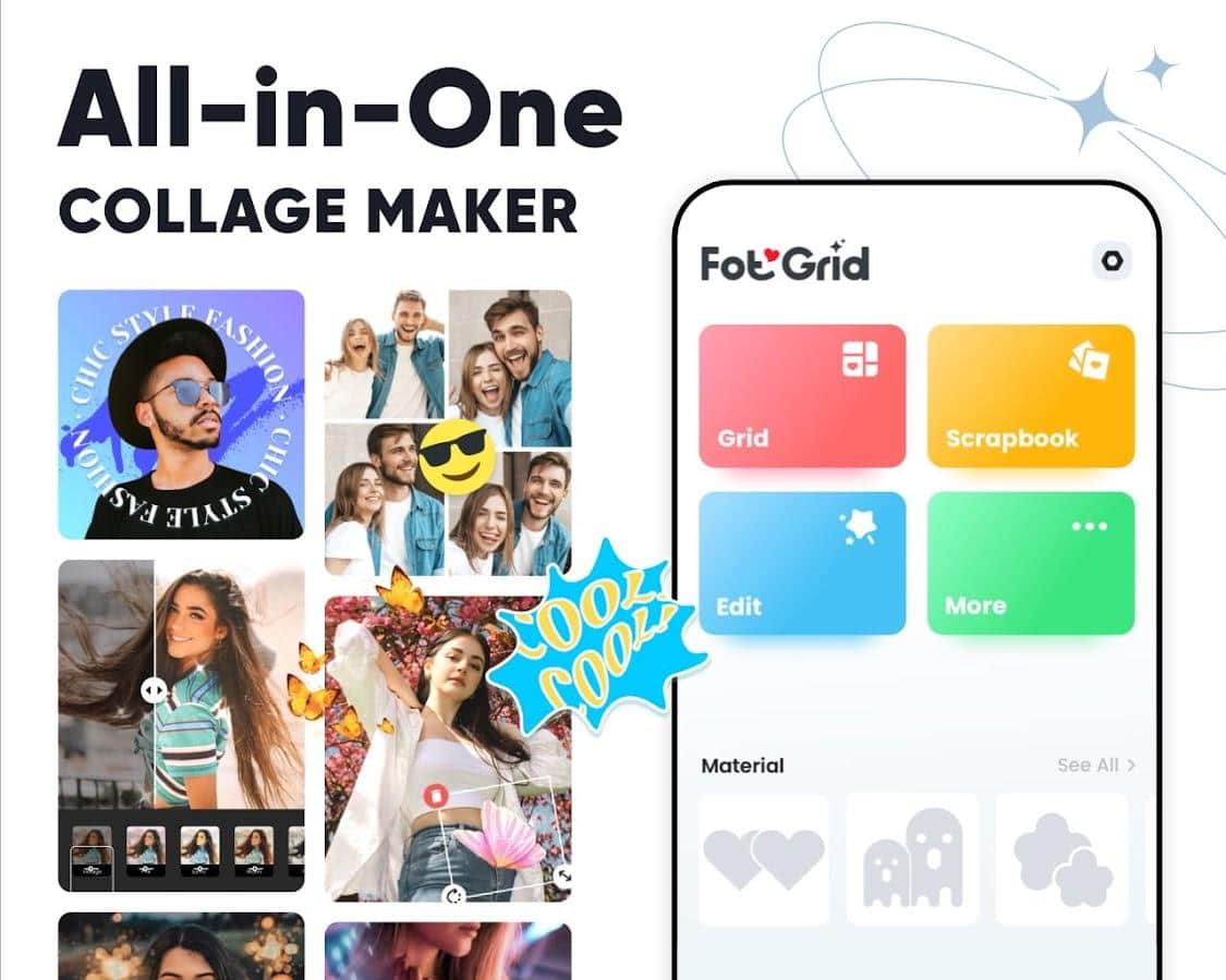 Foto Grid: Коллаж Фото - для любого изменения фотографий в качестве коллажей потребуется целая коллекция из доступных шаблонов, так как количество выбранных изображений, их расположение, видимость важных деталей и прочее напрямую влияет на красивый результат. Найдите в поиске любой понравившийся коллаж под собственные потребности и посмотрите, как будут соблюдены пропорции и вы получите хорошие снимки. Для получения еще лучшего результата, в процесс коллажирования используйте: фильтры, стикеры, текст, кисти для рисования, мозаику, притом не забудьте про рамку.