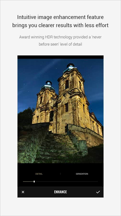 Большинство функций и инструментов знакомы нам по программам-конкурентам: реалистичный HDR, таймер, стабилизатор, серийная съемка и многое другое.