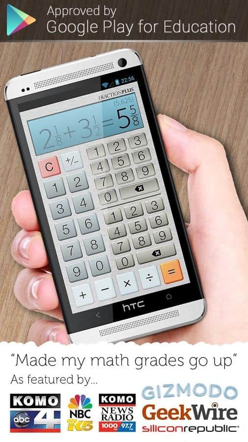 Fraction Calculator Plus – хороший, удобный калькулятор для андроид устройств от разработчика Digitalchemy, LLC, с возможностью вычисления дробей. Отлично подходит как для повседневного пользования, так и для решения сложных задач.