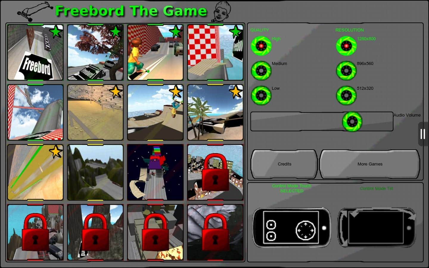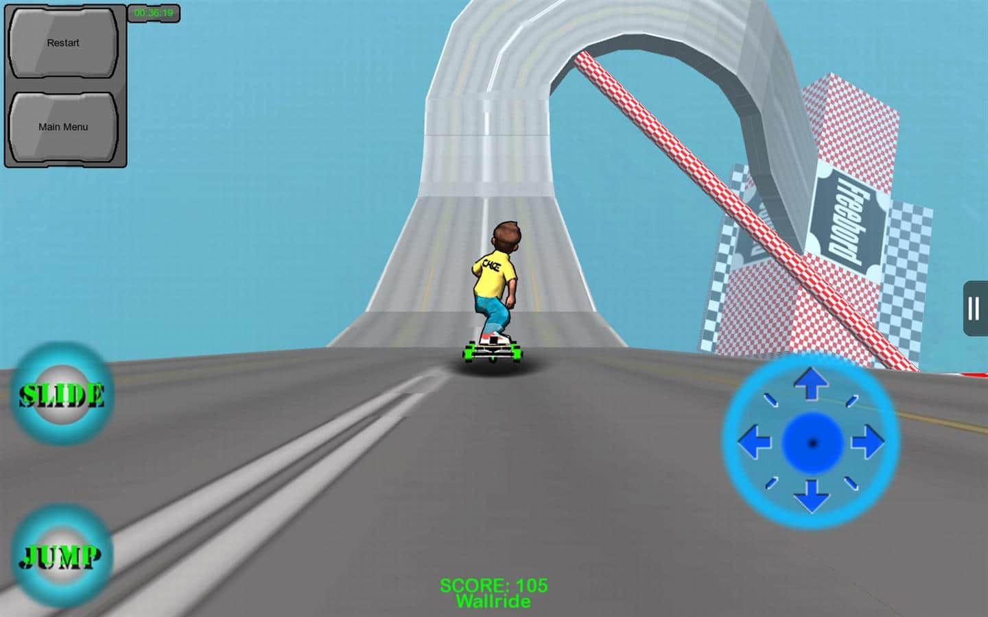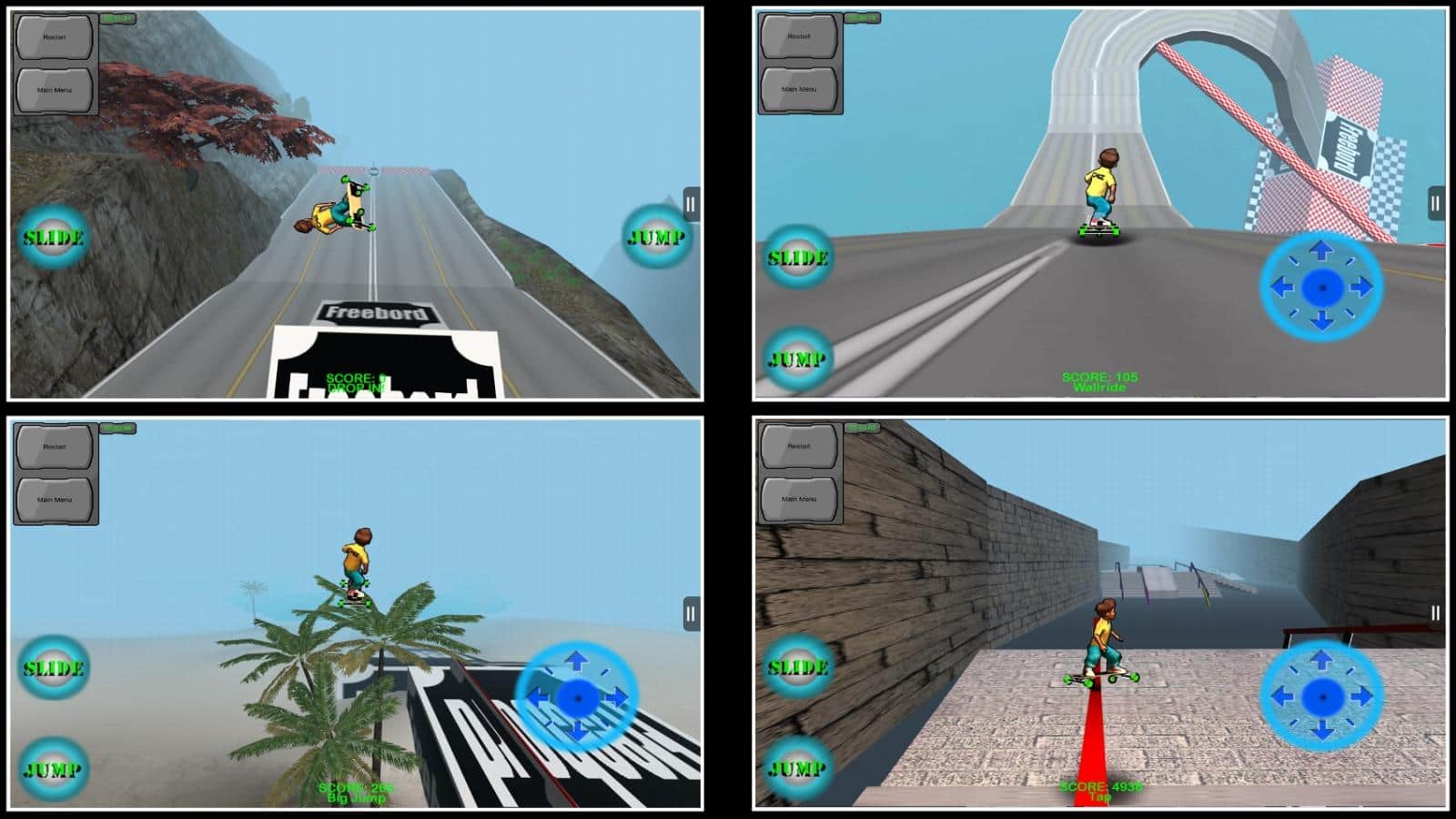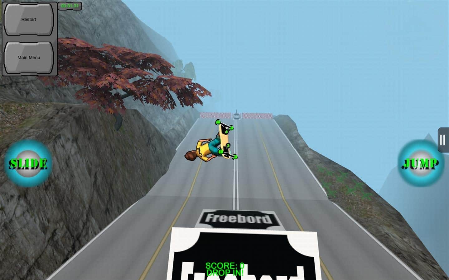 Freebord The Game - захватывающая игра в которой представлен новый вид спорта Freebording. Этот вид спорта представляет из себя спуск с опасных крутых склонов на шести колесном скейтборде. Катайтесь по различным трассам, собирайте бонусы и монетки и открывайте новые не повторяющиеся трассы. Вас ждет легкое управление и много всевозможных препятствий и преград, которые будут мешать вам двигаться вперед.