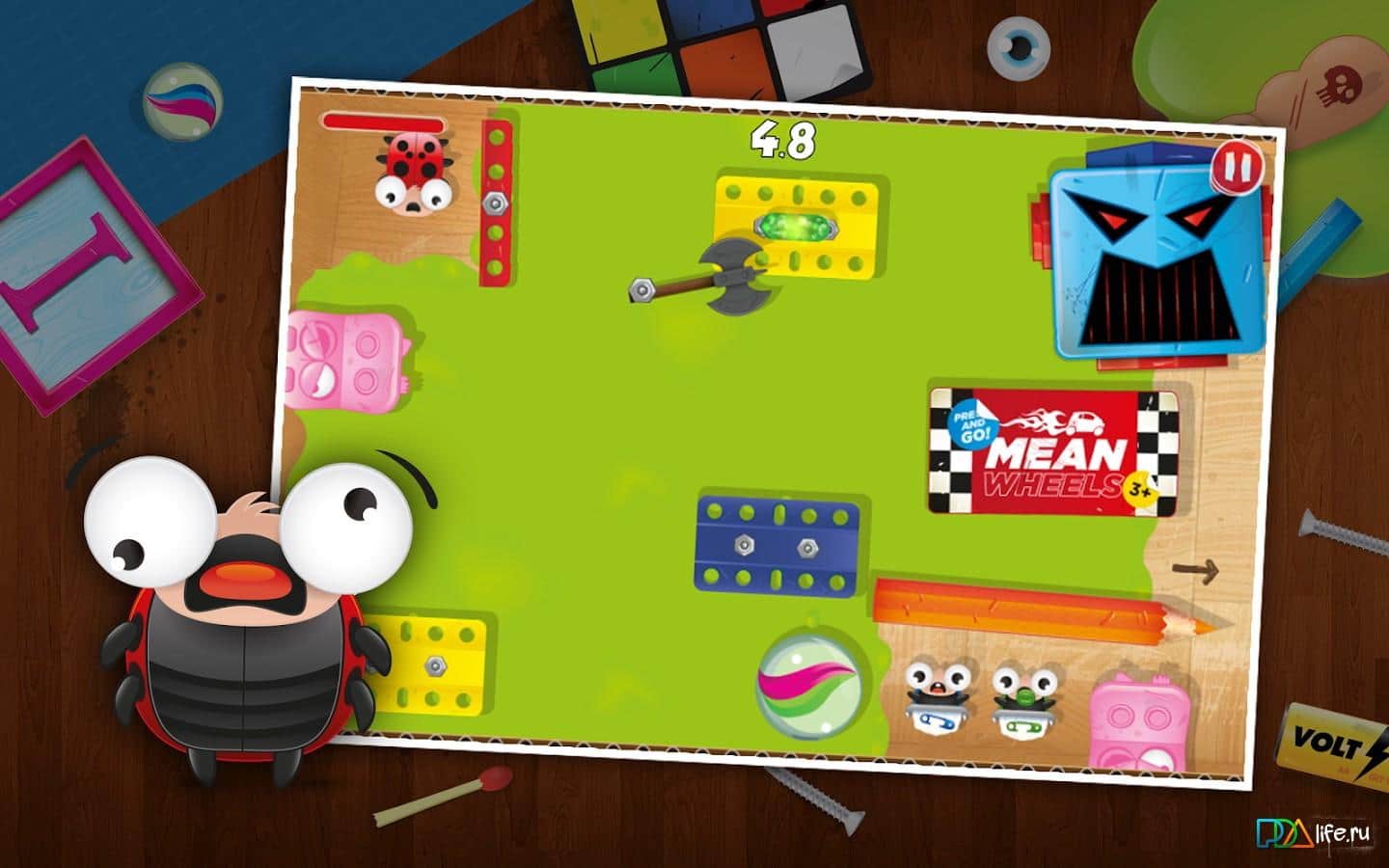 FreeDum - игра головоломка на андроид, в которой вы будете помогать маленькой божией коровке, преодолеть все ловушки мальчика Макса. Хитроумный механизм сооруженный мальчиком наполненный бритвами, иголками, пилами и топориками не даст вам не единого шанса на ошибку, так что действуйте аккуратно, проходя через хитрые ловушки и помогая главному герою собрать своих малышей. С каждым новым уровнем ловушки будут становиться все изощреннее и сложнее и для того чтобы их преодолеть торопится не стоит, а то попадетесь на крючок.