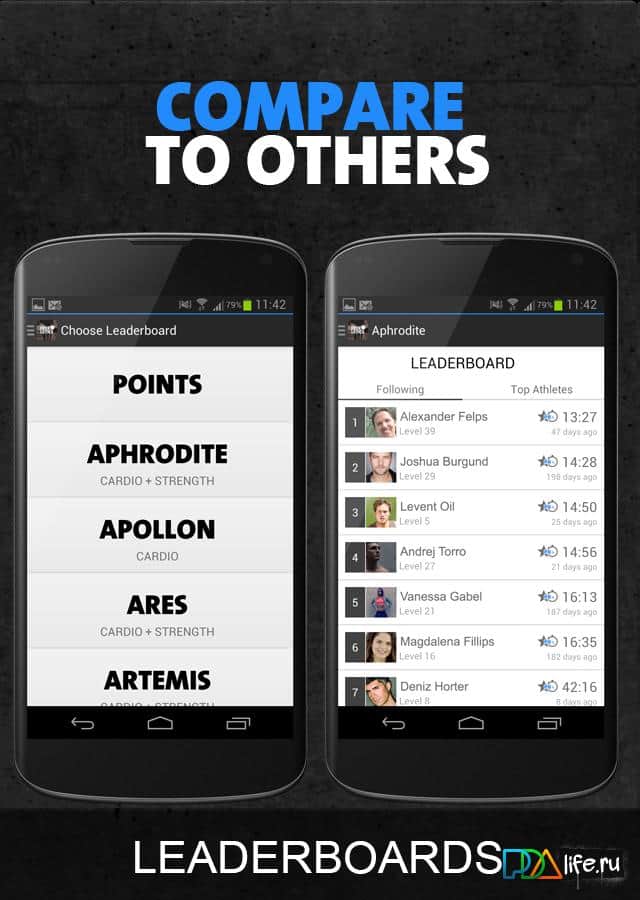 - Сравнивай собственный результат тренировок с результатами других пользователей