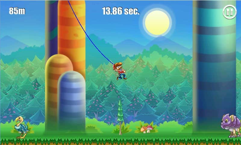 French Fly - веселая игра в которой вы будете управлять французом прыгающим на веревках. Наш герой летает с места на место используя для этого веревки, которые цепляются за все что попадается у него на пути деревья, вертолеты и др. Нажимайте на экран и помогайте герою преодолевать все препятствия на его пути, а также бесчисленное количество врагов подстерегающих его в разных местах. Пройдите как можно дальше в этой игре и наберите максимальное количество очков, чтобы побить все рекорды. В этой игре вас ждет три режима игры и три уровня сложности выбирайте тот который подходит вам и наслаждайтесь игрой.