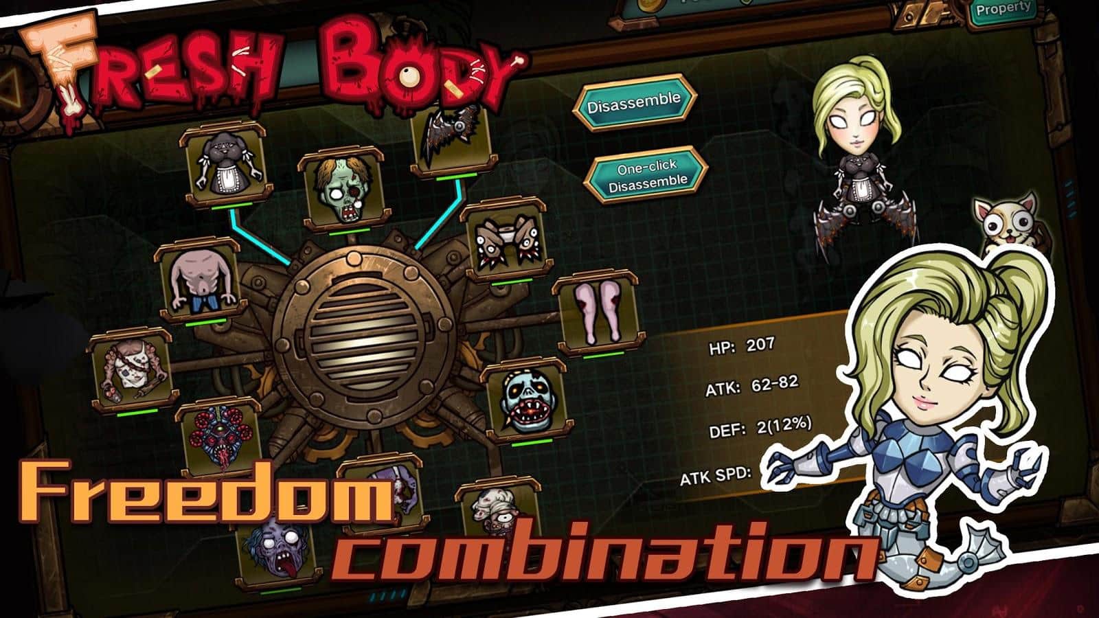 Fresh Body – хардкорная игра с элементами RPG на андроид, где вы будете сражаться с многочисленными монстрами. Возьмите под свой контроль главного героя и проведите его по мрачным локациям, открывая для себя мир кишащий монстрами и чудовищами. Вашей задачей будет убивать монстров, и собирать их части тела примеряя их на себя тем самым получая дополнительные способности. Превратите своего героя в монстра, что поможет вам прогрессировать и получать силу монстра. Получите своего уникального персонажа, который сможет обладать супер скоростью и супер ударами. Наносите врагам больше повреждений, регенерируйте и даже возрождайтесь.