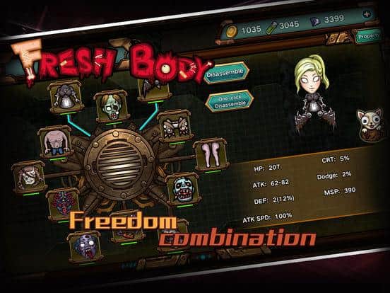 Fresh Body – хардкорная игра для IOS, где вы погрузитесь в темный и мрачный мир игры. В этой игре вы будете играть за изгоя, которому необходимо исследовать опасный мир и убивать монстров, собирая после них различные части тела. Каждая часть тела обладает уникальными навыками и способностями, которыми вы сможете наделить своего героя. Превратите таким образом своего героя в монстра и побеждайте даже сильных боссов. Создавайте свой неповторимый характер и адаптируйте свой стиль игры к новому персонажу, которого вы создадите. Создавайте своего героя из различных частей врагов и улучшайте его гены.