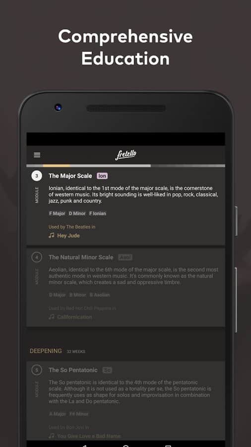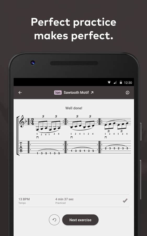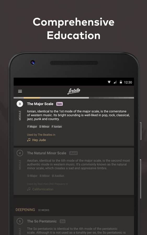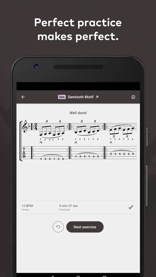 Fretello - Practice Guitar - Давно мечтали научится музыке? А что главное в этом? Правильно это практика! Однако важна не только практика, ваши знания нот, это одна из самых важных особенностей в музыке, ведь без них вам попросту не сочинить мелодию для песни. Данное приложение было разработано музыкантами, для музыкантов, и оно станет вашим личным тренером, который будет подбирать вам расписание тренировок. Более 5000 различных заданий и уроков. А так же более 250 треков с различными музыкальными направлениями.