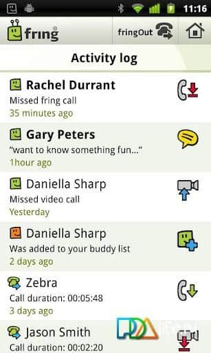 Fring - отличный мобильный клиент на android, поддержка ICQ (чат), Skype (звонки), Twitter (чат), SIP (звонки), AIM (чат), MSN Messenger, Google Talk, Yahoo (чат). Одно из самых первых приложений, которое поддерживает фронтальную камеру. Разработчики обновили мессенджер, так что теперь он получил поддержку видеовызовов, в том числе и с использованием фронтальной камеры. Программа весьма популярна и набирает своих поклонников бешеными темпами. Что хочется еще отметить, так это необходимость регистрации на fring.com (русский язык поддерживается), контакты берет из адресной книги на телефоне.