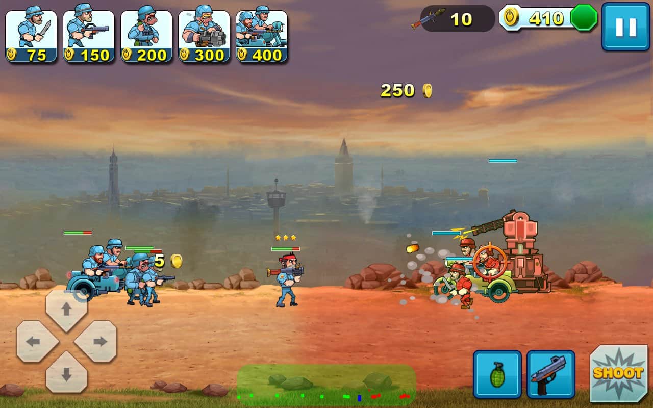 Frontline Soldier – возьмите под свой контроль отважного солдата, который может в одиночку уничтожить толпы врагов. Ведите своего героя вперед и уничтожайте врагов и их технику одним точным выстрелом из гранатомета, винтовки или огнемета. Перемещайтесь по игровому полю из стороны в сторону и избегайте таким образом, огня противника. Собирайте на своем пути опытных союзников, которые помогут вашему герою справиться с врагами. Захватите вражескую базу и улучшайте походу игры своего героя и его помощников, делая их более сильными. Главными особенностями игры являются 35 красочных уровня, 10 союзников, а также разнообразное оружие и боеприпасы.
