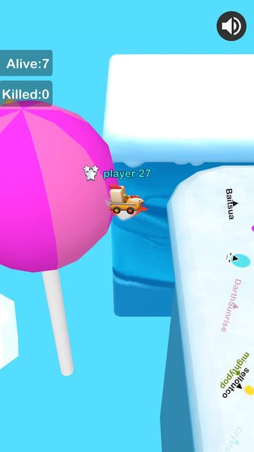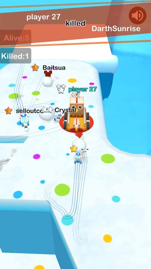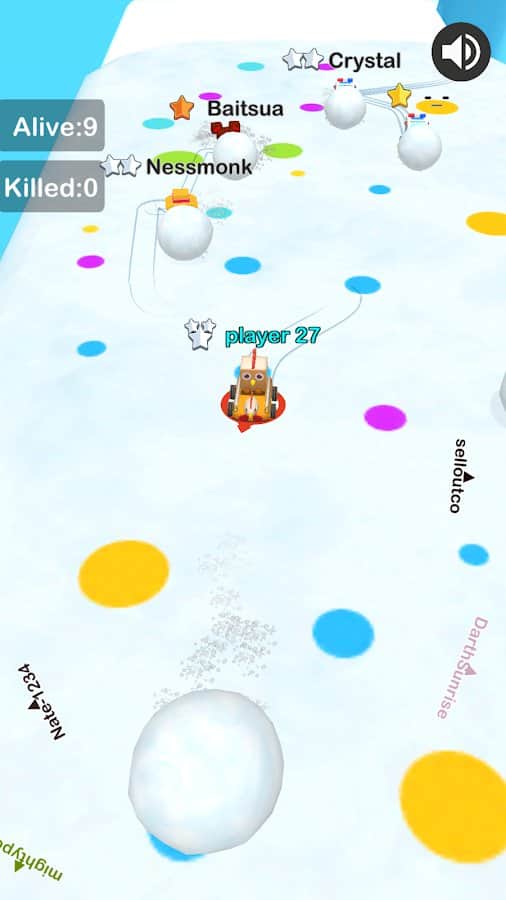 Frozen Kart: Snowball GO! – веселая игра на андроид, где вы будете играть в снежки. В этой игре вы будете управлять картингом, который ездит по заснеженным локациям и собирает снег в огромный снежный ком. Катайте свой снежный ком как можно быстрее не давая возможность врагам опередить вас. Чем больше будет ваш снежный ком тем лучше, тем больше врагов вы уничтожите и сбросите в океан. Вашей задачей будет остаться единственным выжившим на острове и одержать победу. Открывайте для себя новые машинки, которые быстрее будут собирать снежки и выиграйте чемпионат.