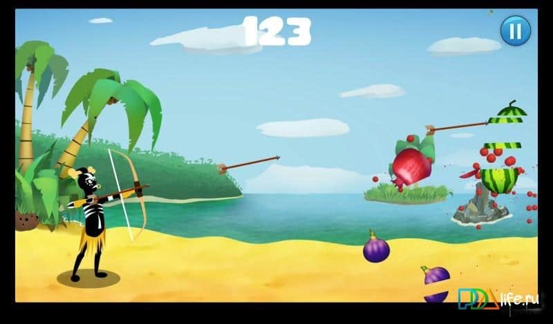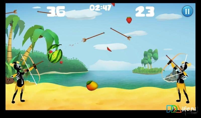 Fruit Archer – увлекательный тайм киллер на андроид, где вы окажитесь на тропическом острове и будете помогать аборигенам резать фрукты. Возьмите под свой контроль аборигена, который вооружен луком выпускайте стрелы метясь точно в падающие с деревьев фрукты. Играйте в эту игру сами или со своими друзьями на одном устройстве и наслаждайтесь разнообразными тропическими фруктами, разрезая их на мелкие кусочки. Не упустите не один фрукт, оставив его не нарезанным. Игра порадует игроков отличной яркой графикой, бесконечным режимом игры, многочисленными бонусами и реалистичной физикой.