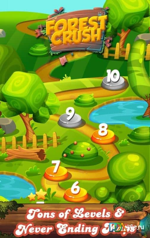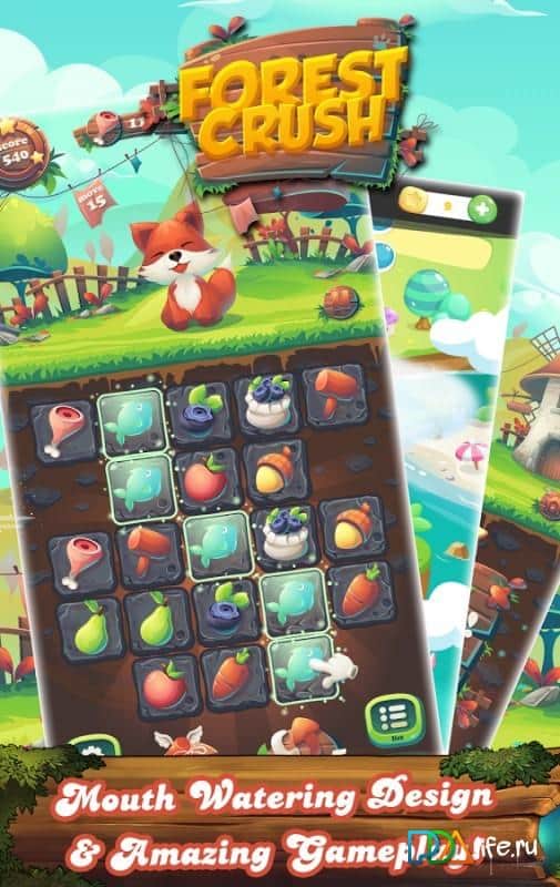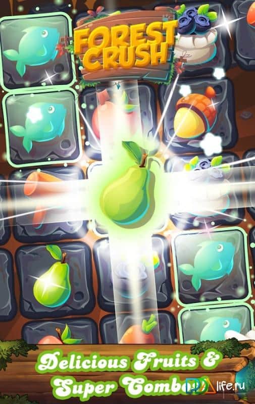 Fruit Forest Crush Link 3 – головоломка из жанра три в ряд на андроид, где вы будете путешествовать по волшебному лесу и собирать фрукты и конфеты. В этой игре вам предстоит складывать различные объекты по три и более в ряд, убирая их с игрового поля. Старайтесь составить как можно более длинные ряды из фруктов и конфет и запустить в действие цепную реакцию, которая за один миг очистит экран от всех объектов. Выполняйте все задания и миссии за минимальный промежуток времени и потратив при этом меньшее количество ходов. Установите свой рекорд в этой игре и откройте для себя все уровни.