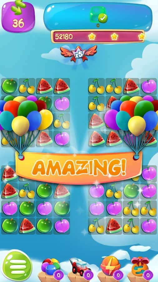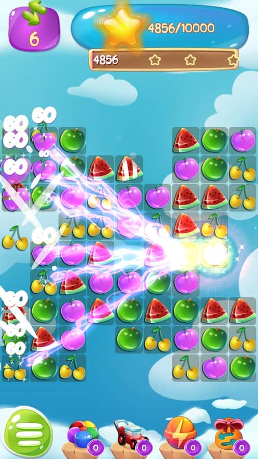 Fruit Jam Splash: Candy Match – составляйте ряды из одинаковых по цвету фруктов в этой игре из жанра три в ряд. Сортируйте фрукты и передвигайте их, чтобы получить как можно длиннее цепочку из одинаковых по цвету предметов и взорвать их. В этой игре вы будете путешествовать по летающим островам, на которых вы встретите большое разнообразие фруктов. Прилагайте всю свою логику и отличную реакцию, чтобы как можно быстрее очистить уровень от всех фруктов и получить отличные бонусы. Играйте в эту игру и получайте максимум удовольствия от ярких и сказочных уровней, которые будут радовать вас на протяжении всей игры. Добейтесь рекордных результатов и установите свой рекорд в этой игре.