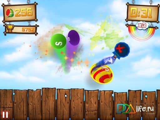 Fruit Ninja vs Skittles - Миры конфет и Fruit Ninja столкнулись в красочной игре на android! Теперь в этой игре не только фрукты, но и конфеты! Благодаря конфетам Skittles игра стала намного красочней и ярче. Как и раньше вам нужно разрезать вылетающие фрукты и конфеты, но в игре добавлена и красочная радуга. Как и раньше в игре присутствуют бомбы. С добавлением конфет игра приобрела больше красок и стала намного увлекательней.