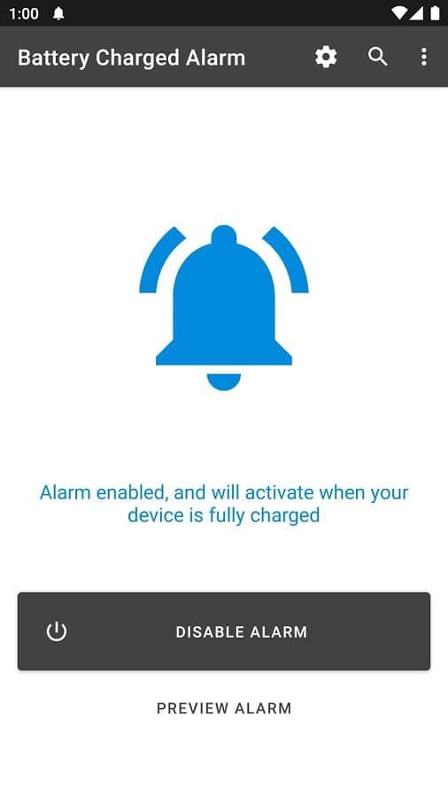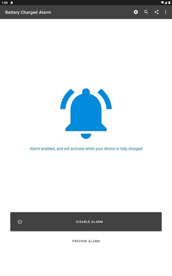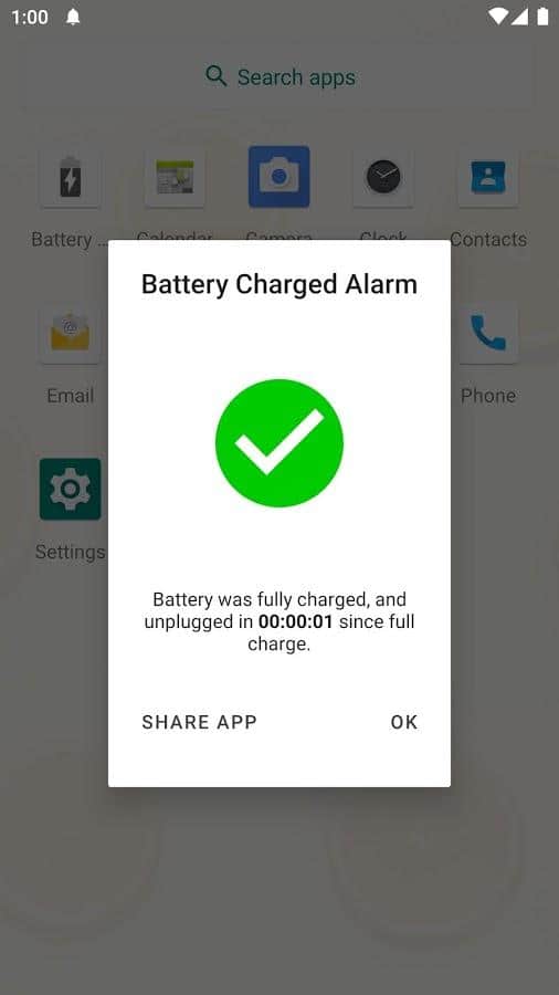Full Battery Charge Alarm показывает уровень заряда батареи вашего устройства и подает сигнал по ее окончанию.