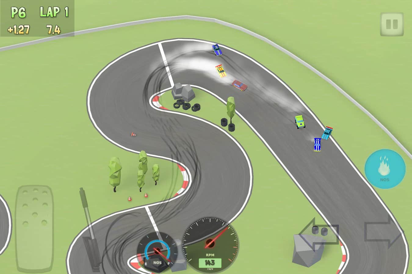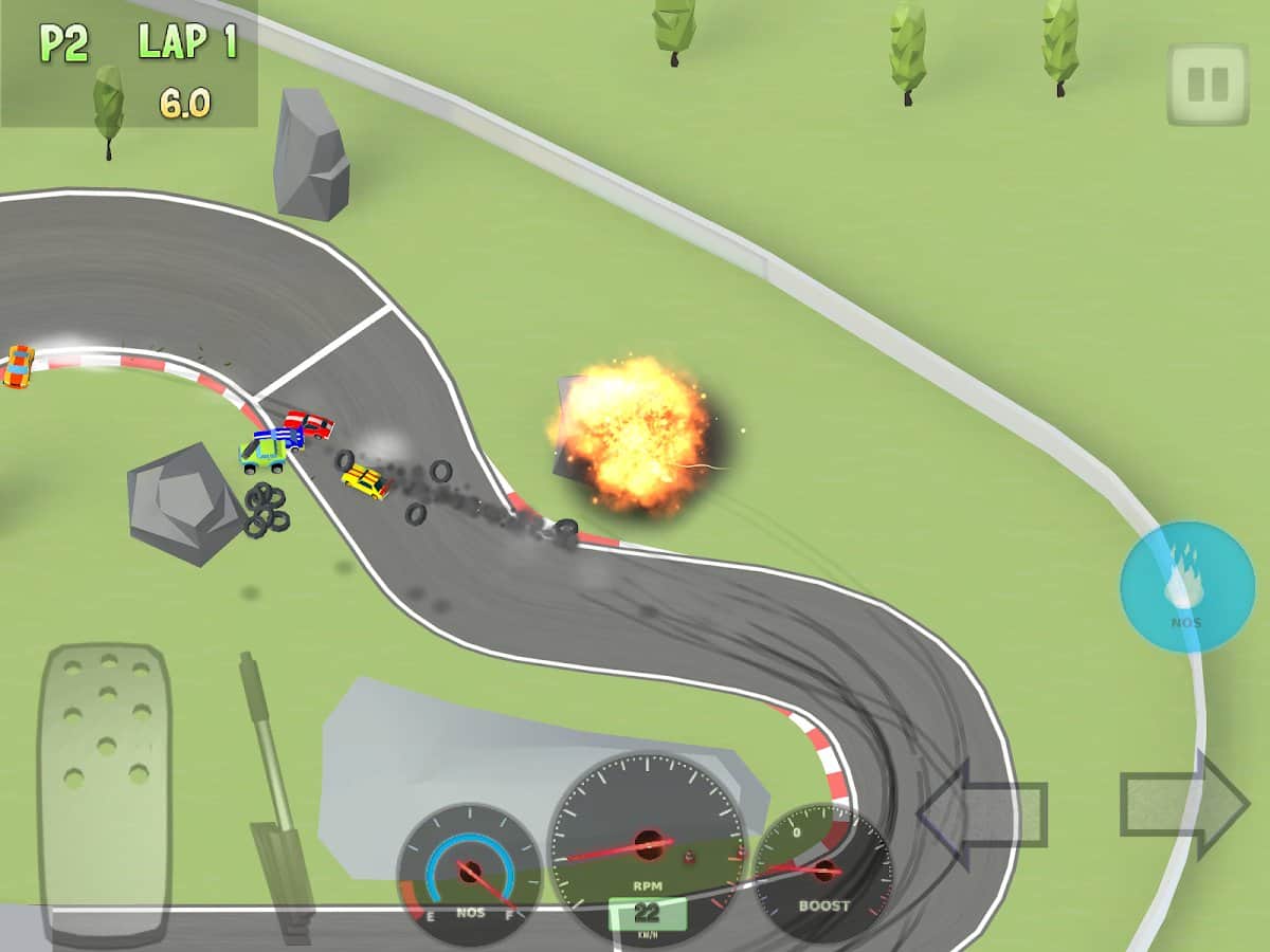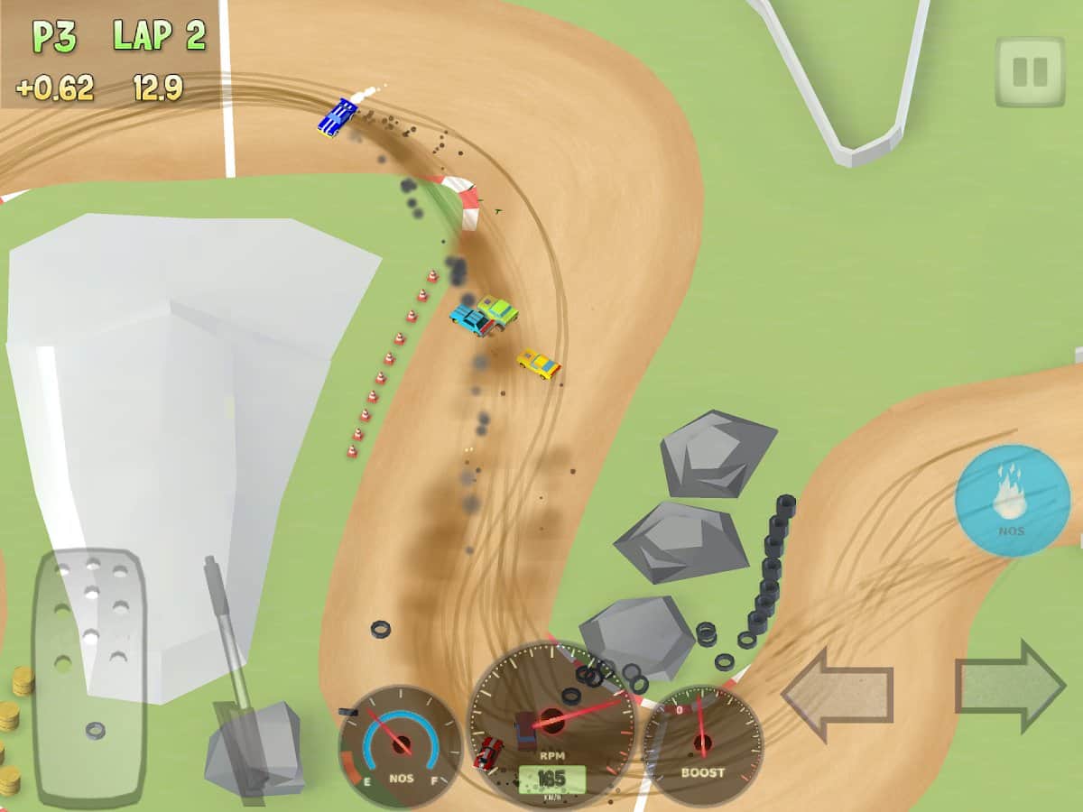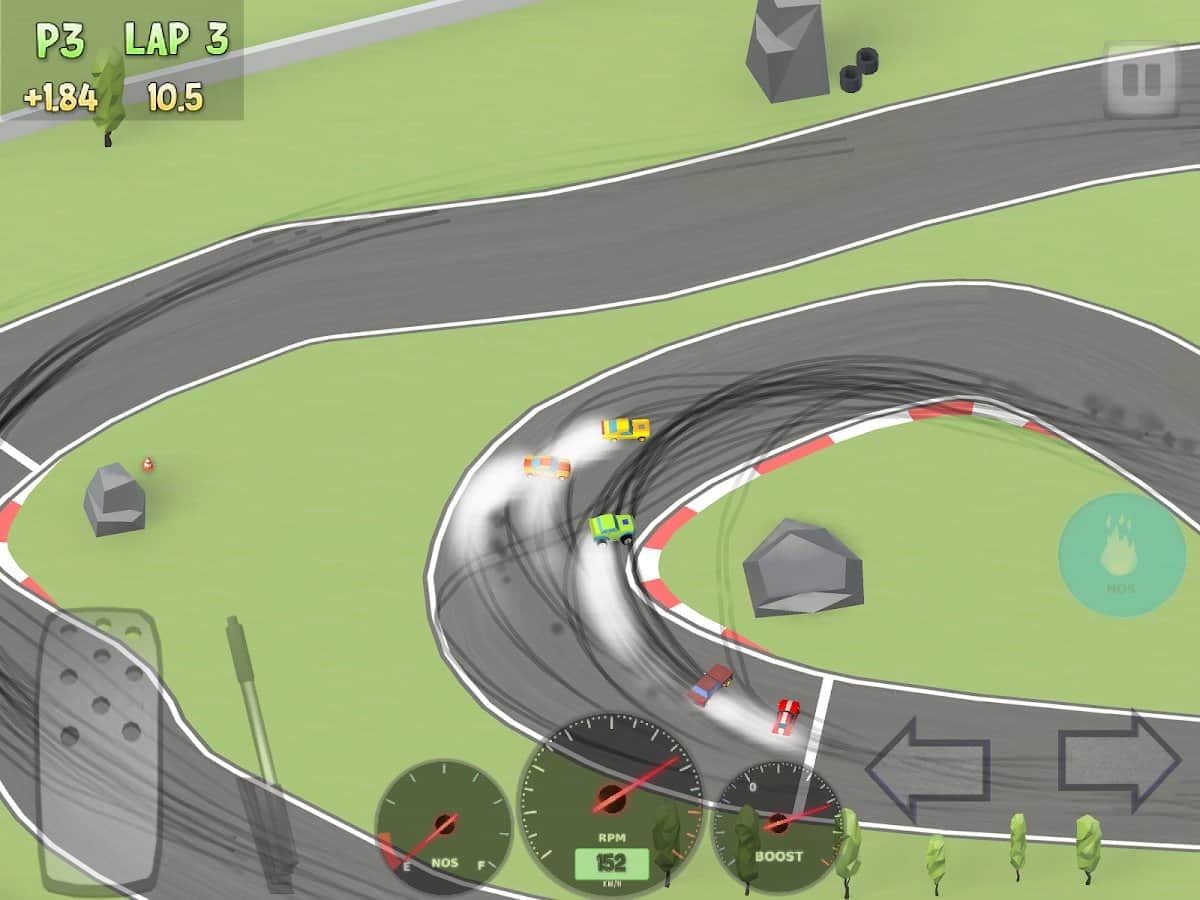 Хорошие гонки,мне управление больше всего нравится,зато играть очень удобно особенно с видом сверху.
