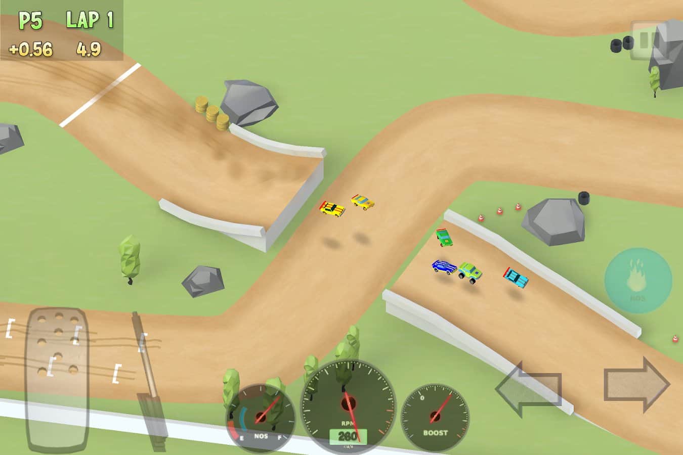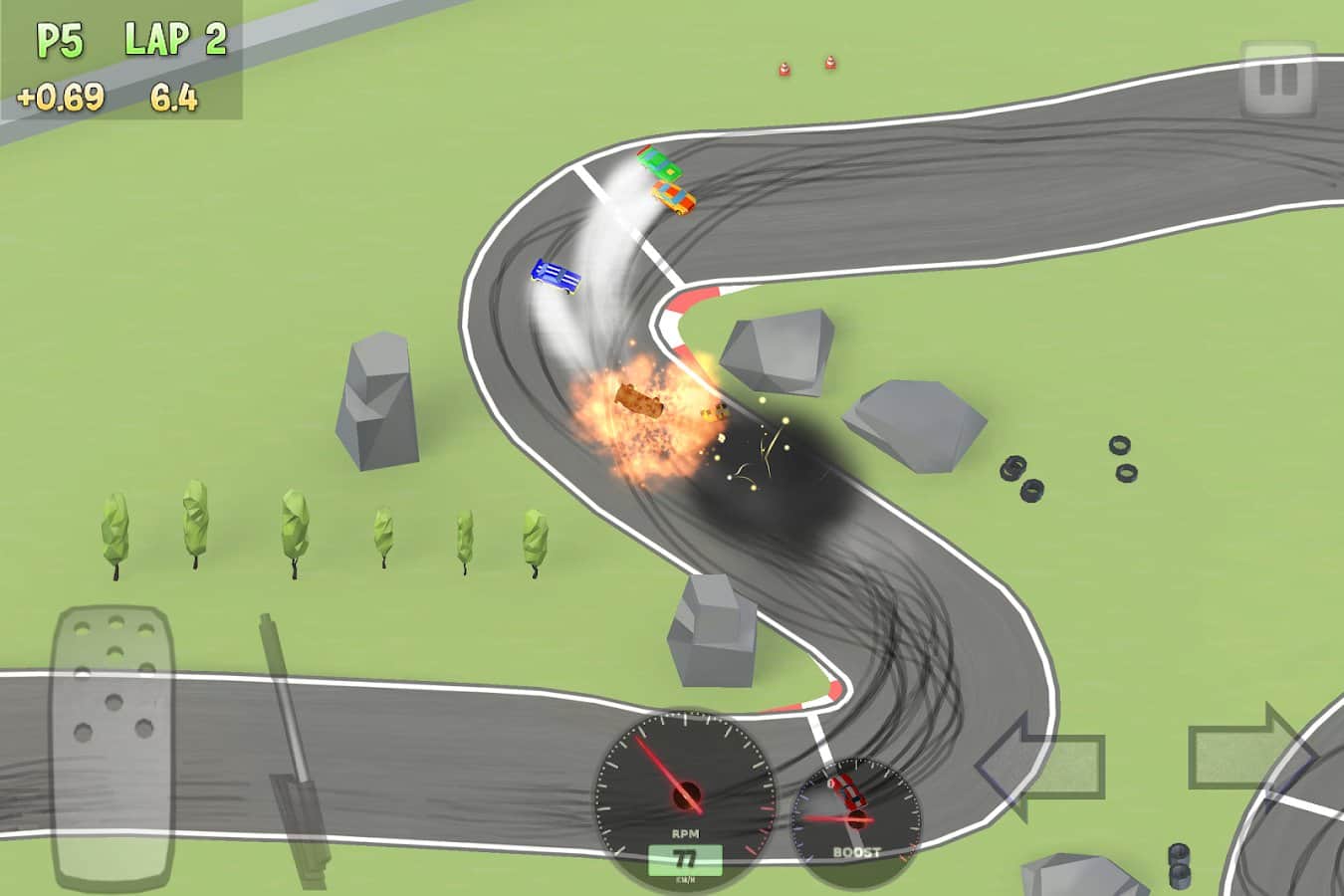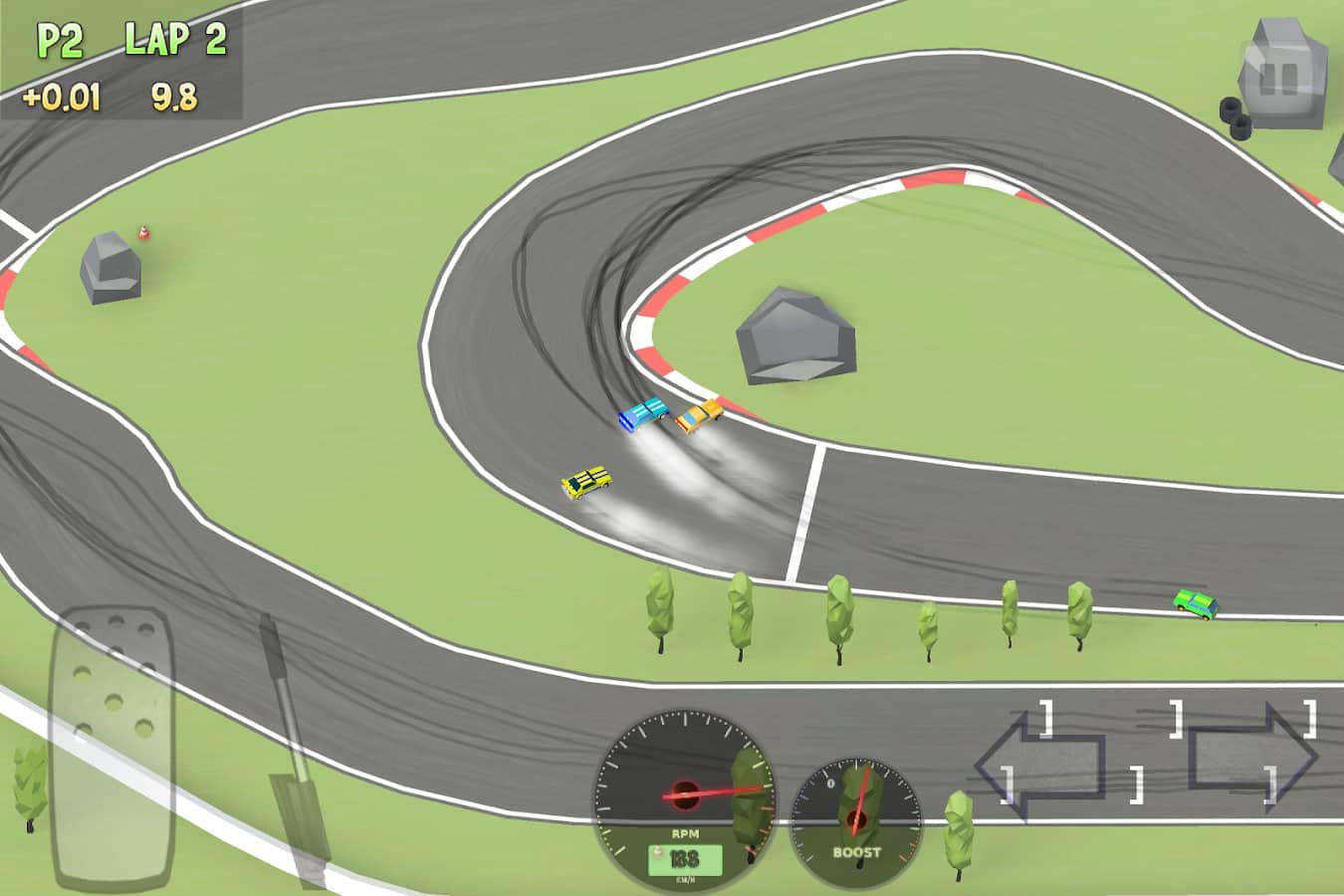 Хорошие гонки,мне управление больше всего нравится,зато играть очень удобно особенно с видом сверху.