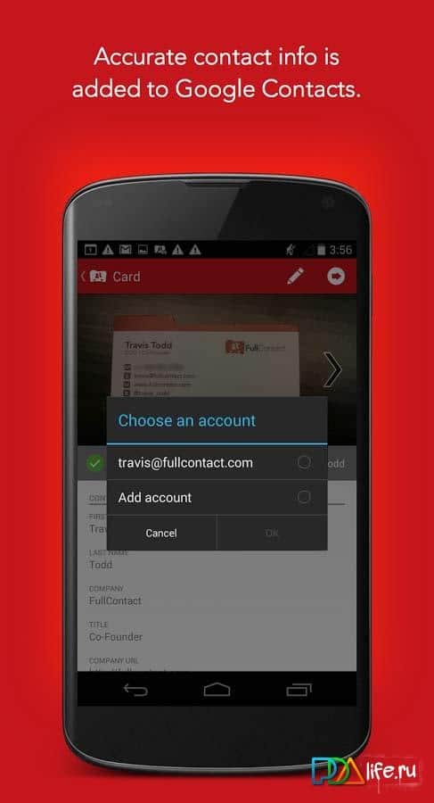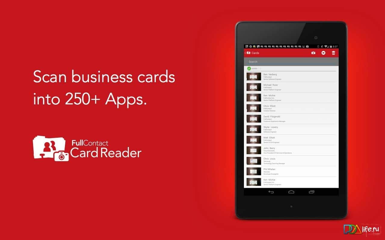 FullContact Card Reader – интересное приложение от разработчиков FullContact для андроид устройств, представляющее собой сканер визитрых карточек, в возможности которого входит превращение данных с карточки в контактную информацию в желаемом виде! Скачиваем, пробуем и не забываем оставлять комментарии.