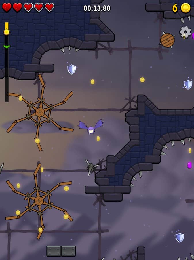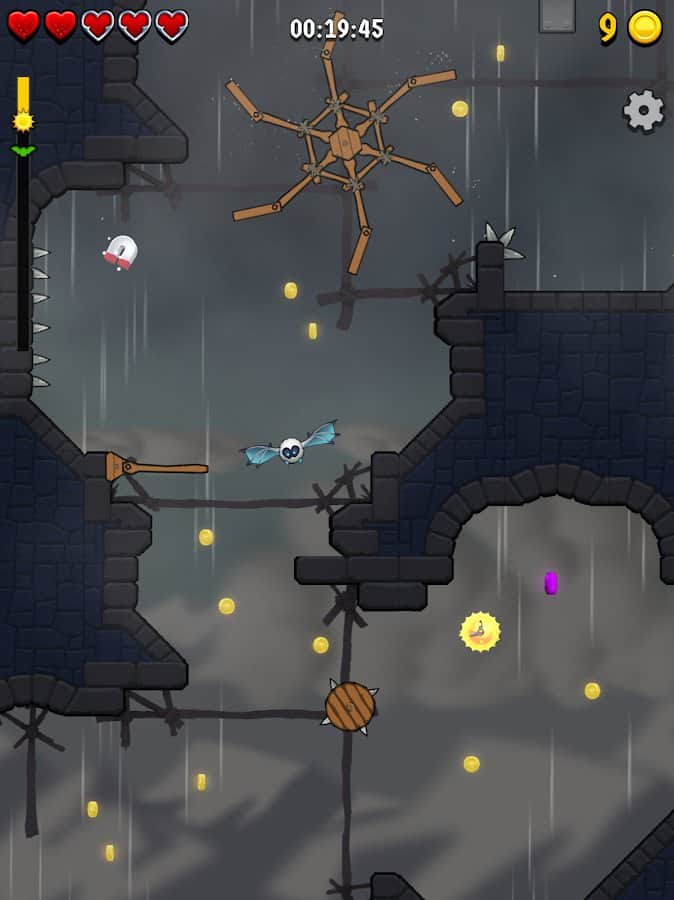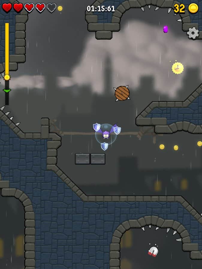 Fumble Fang – управляйте летучей мышью и помогите ей пройти все испытания игры. Ваша мышь очень неуклюжа и ей понадобиться ваша помощь, чтобы пройти все уровни игры и обойти многочисленные преграды. Летайте по различным локация ночного города, подземелья и другим уровням и собирайте бонусы. Старайтесь пройти все испытания, пока не взойдет солнце. Касайтесь экрана в нужный монет, чтобы направлять мышь в правильном направлении. Применяйте щиты, дополнительные жизни и другие бонусы в игре и пополняйте свою коллекцию новыми персонажами.