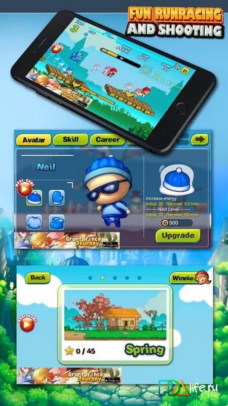Fun Run Racing And Shooting – бесконечные гонки в режиме мультиплеер с игроками со всего мира. Выбирайте себе героя из представленных в игре и начните свою гонку ради победы. Бегайте, прыгайте и обходите все препятствия на своем пути, путешествуя по различным локациям. Замедляйте своих соперников, которые хотят вас обогнать с помощью специальных дротиков и приходите в финишу первым. Примеряйте на своего героя различные костюмы и аксессуары, которые помогут ему в гонке и занимайте первые места в таблице лидеров. По пути собирайте предметы и бонусы и ускоряйтесь за счет них.