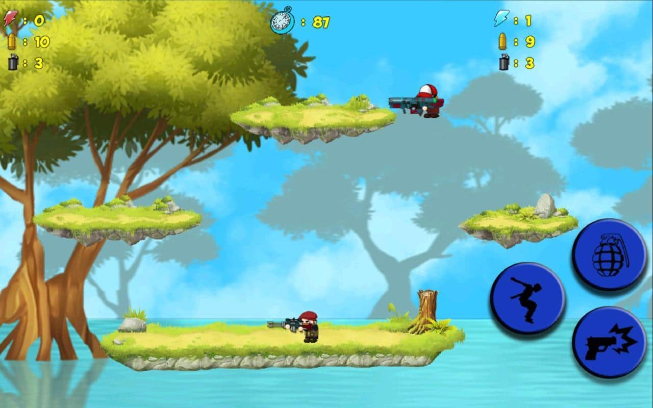 Funny Battle – игра на андроид, с видом сбоку где вы будете сбивать соперника. В этой игре вашей главной задачей будет сбить соперника с платформы при этом самому не упасть. Используйте для сбивания соперника разнообразное оружие и бонусы и постарайтесь выполнить поставленную задачу за минимальное количество попыток. Набирайте очки и получайте монетки и приобретайте на них новое мощное оружие и в бой. Продержитесь как можно дольше в игре и установите свой рекорд. Играйте с друзьями и другими игроками и докажите всем что вы лучший игрок.