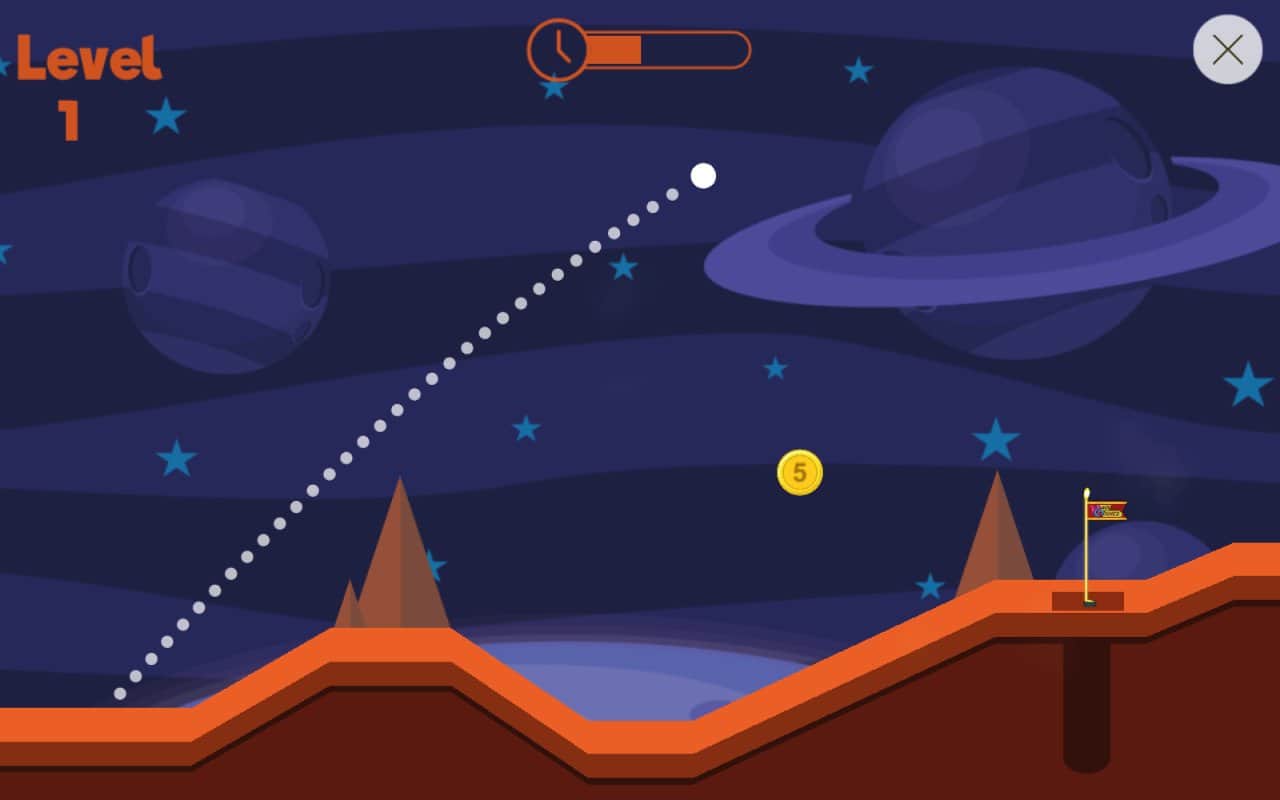 Funny Golf - Интересный и довольно не обычный гольф на наши с вами андроид девайсы. Разработчики игры предлагают вам, как игроку, поиграть в гольф, не только на специально отведенных площадках, но и даже на Марсе и других не обычных местах! Вся сложность заключается в том, что у вас будет всего лишь одна попытка, чтобы попасть в лузу. Превратите серьезную игру в смешное и забавное состязании.