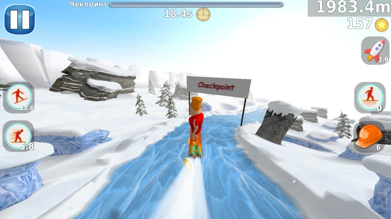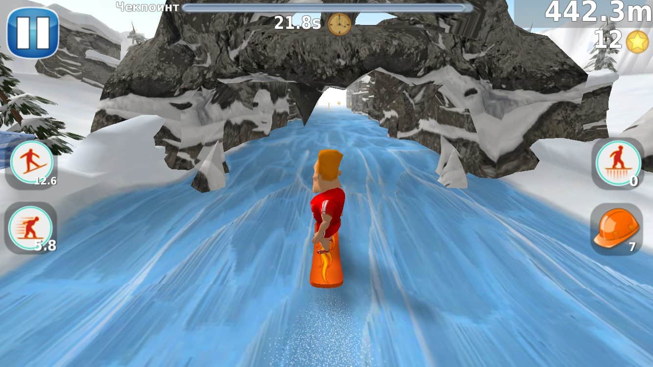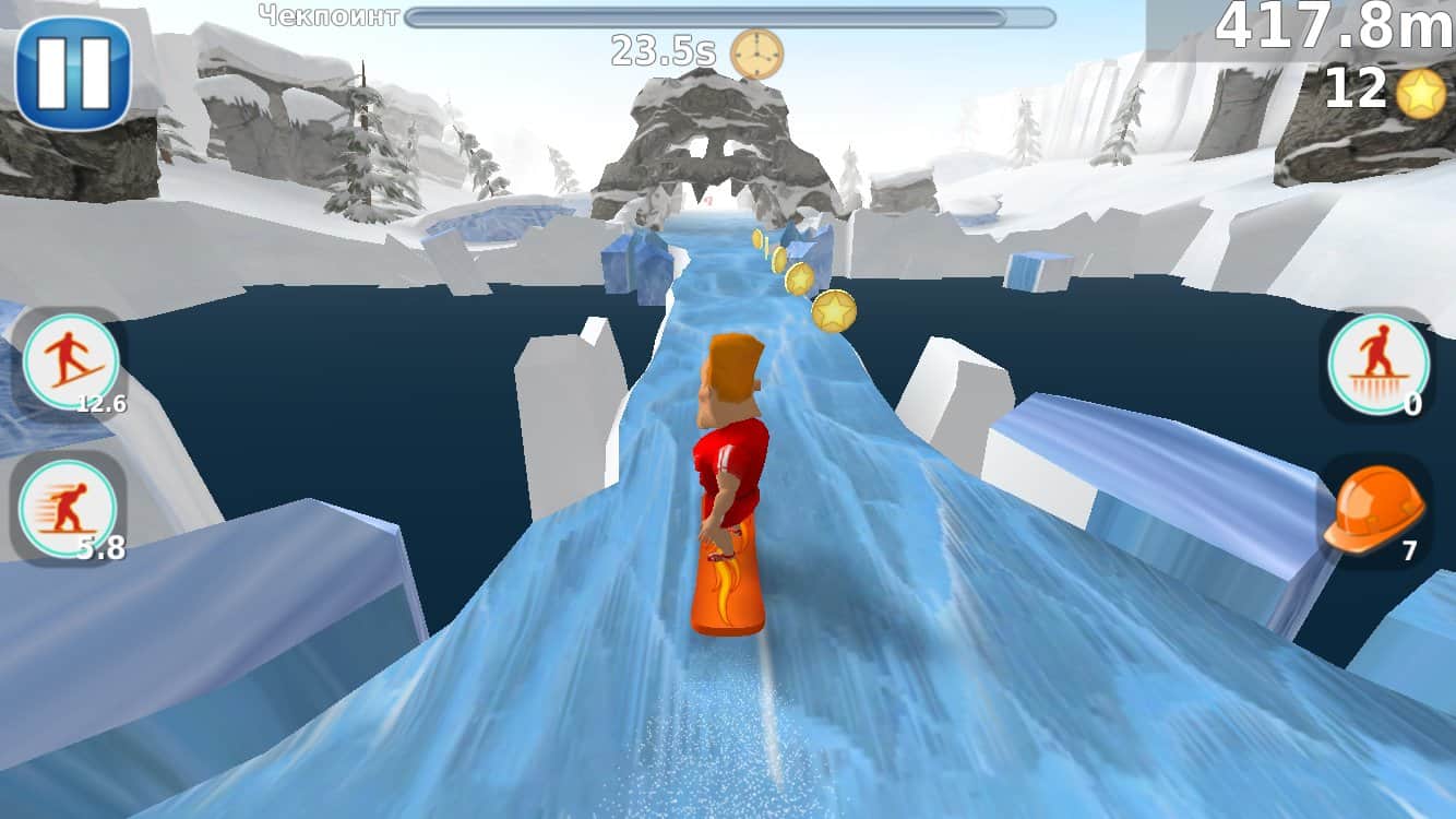 Funny Racing / Веселые гонки - Великолепно исполненный раннер в которой вам нужно будет не просто бежать а ехать на сноуборде по льду, огибая и перепрыгивая препятствия. И хотя игра по сути своей весьма проста, она затягивает не на один час, примечательно в ней то, что вы сможете улучшать, изменять и прокачивать своего персонажа. И не смотря на всю свою простоту, графика здесь так же на достойном уровне.