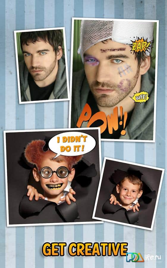 FuntasticFace – клевая программа на андроид, носящая исключительно развлекательный характер! FuntasticFace поможет вам добавить в свое фото и фото друзей не мало изменений, от прически до накладных синяков и безболезненного пирсинга. Ну а если, кто-то из друзей расстроил вас, то вы можете от души преобразить его фото и поделиться результатом в Facebook, Twitter или по электронной почте. Однако помните, не у всех может оказаться такое же чувство юмора как у вас! Берегите себя! ;)