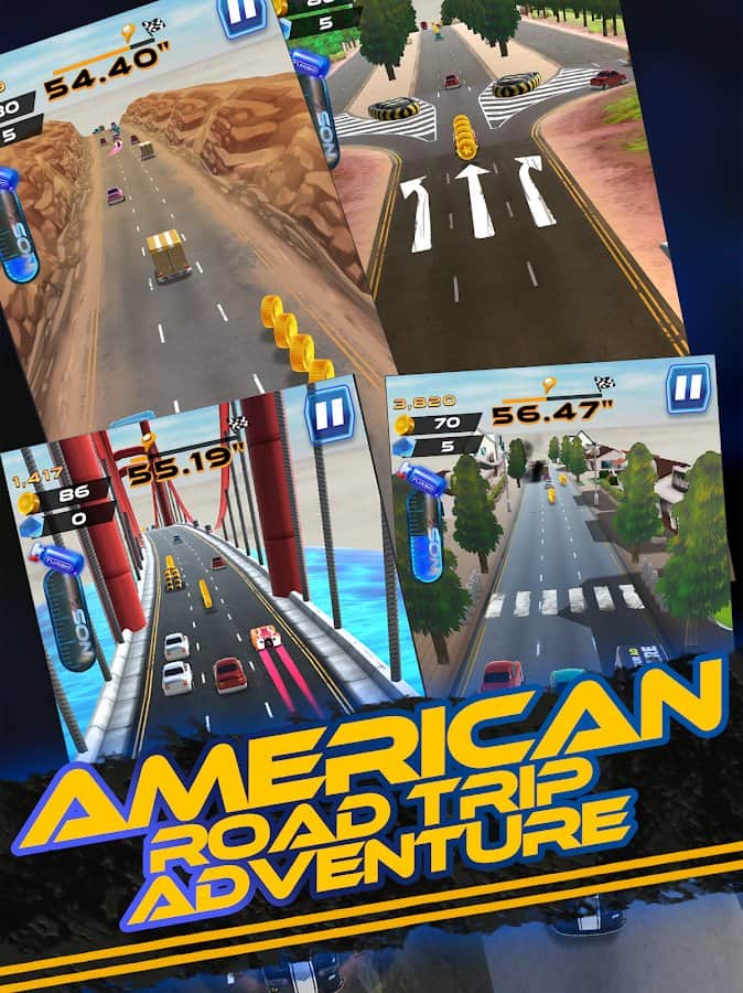 Почувствуйте адреналин и испытайте буру незабываемых эмоций, участвуя в гонках Furious Road Trip по штатам США. Простые аркадные гонки для убивания времени но не больше.