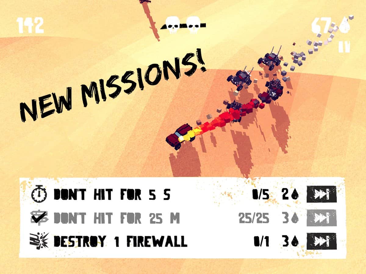 Обновите до последней версии. На данное время 1.9.2 последняя. Жаль, что игра всё ещё "недоделка". Во первых, тут второй локации всё ещё нет, а хотелось бы и вторую локу открыть. Потом, добавить нормальный выход из игры, это наверно в наш "каменный век" большая проблема и разработчики про это не думают. Есть ещё небольшие притормаживания, когда врагов становится слишком много на экране. В общем, я бы оценил эту игру в 3 балла, большего, пока что, она не заслуживает, тем более, это далеко не первая игра в таком стиле и не последняя, есть и лучше: Pako - Car Chase Simulator, например.