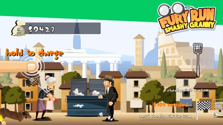 Fury Run: Smashy Granny – управляйте разозлившейся бабушкой которая хочет путешествовать по миру не тратя не копейки. Помогайте бабуле одеться как пингвин и бить людей различными подручными средствами и красть их деньги. Отправляйтесь в увлекательное путешествие по различным локациям и бейте всех на своем пути новой зубной щеткой, но опасайтесь полицейских. Касайтесь экрана своего телефона или планшета в нужный момент и помогайте бабуле уничтожать все на своем пути. Открывайте для себя новые костюмы и примеряйте их на бабулю.