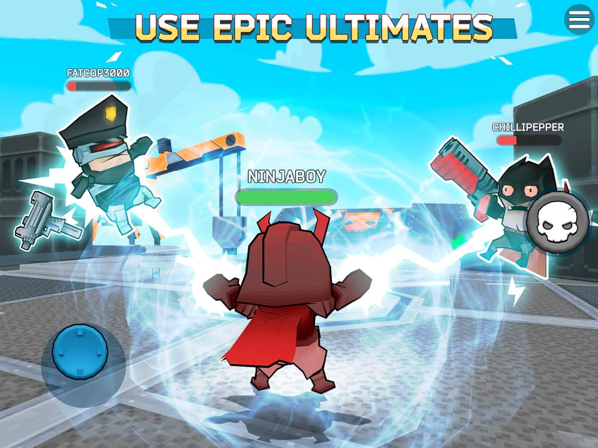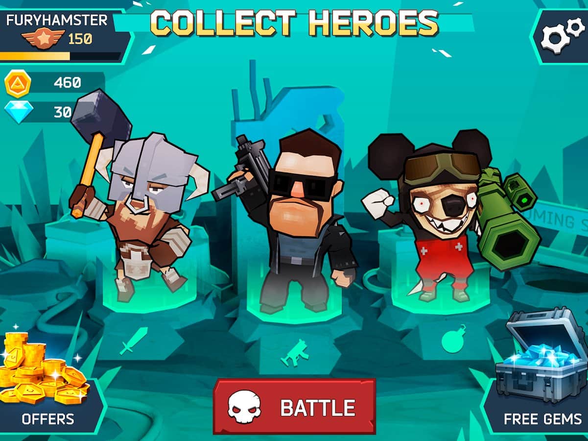 Fury Wars - third person shooter – примите участие в эпической битве которая будет проходить на платформе. Возьмите под свой контроль уникальных героев и бросайте вызов друзьям и другим игрокам. В этой игре вашей главной задачей будет продержаться как можно дольше и уничтожить всех врагов. Каждый персонаж в игре обладает уникальными навыками и способностями. Разрабатывайте свою тактику ведения боя и долго не задерживайтесь на одном месте. Следите за показателями здоровья и отступайте в сложных ситуациях. Получайте бонусы и усиления за каждого уничтоженного противника и приобретайте на них желаемое оружие которое будет наносить максимальный урон и уничтожать сразу нескольких противников.