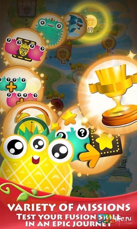 Fusion Two – увлекательная головоломка от разработчика BulkyPix . Если рассказать про игру в двух словах, то вас предстоит объединять различные фрукты и при этом выполнять поставленные вам задачи. Собираем острова и зарабатываем новые бонусы. В игре есть внутри игровые покупки за реальное деньги, хотя и без них можно играть в эту игру. Если не хотите пользоваться платными услугами можно отключить эту опцию запретив приложению внутри игровые покупки.