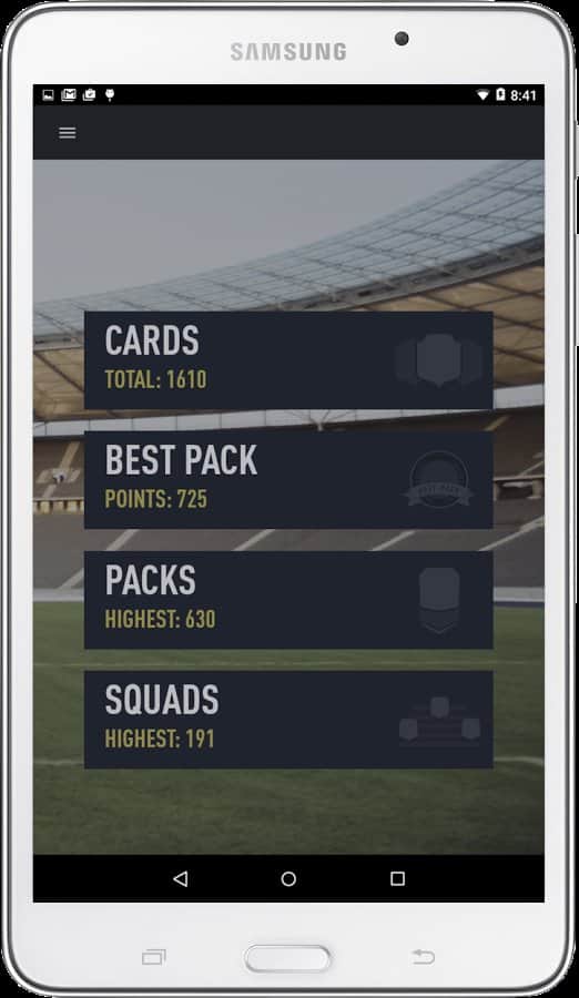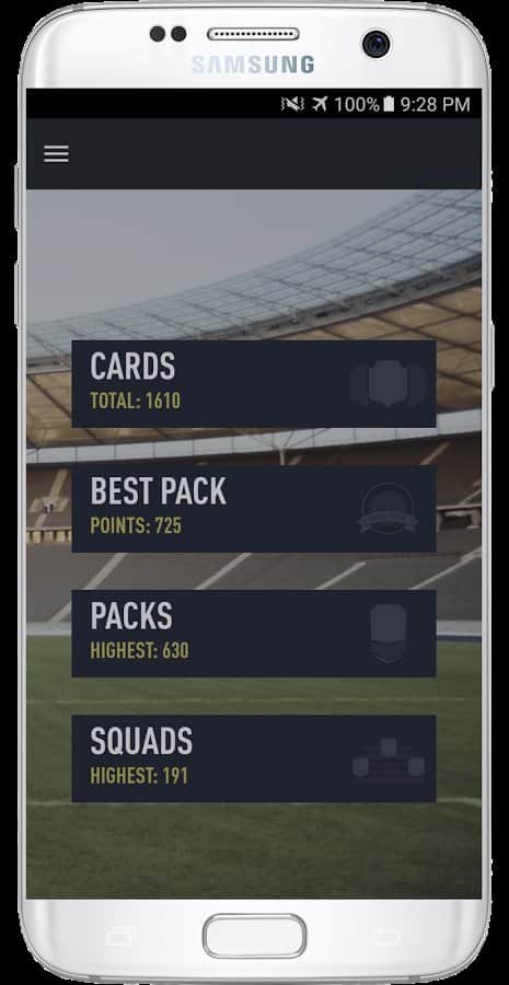 FUT 17 PACK OPENER - карточная игра на спортивную тематику. В данный момент в игре включены 2251 карты включая все редкие, золотые и специальные карточки. Если и этого мало в игре каждую неделю добавляются новые карты. Собирайте свою коллекцию и делитесь её со своими друзьями через социальную сеть Instagram. Имитация турниров, выигрыши различных призов и многое другое ждёт вас в этой увлекательной пошаговой, спортивной игре. Игра отлично работает как на планшете так и на мобильном телефоне. Приятной игры!