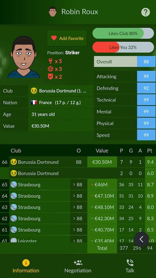 Футбольный агент (Football Agent) - Мир футбола безграничен, представьте насколько сложно управлять футбольной командой с разными характерами в команде. Не упустите шанс стать одним из Представителей: тренируйте парней для матчей, просматривайте успехи игроков в рейтинге, изучайте подробную информацию каждого героя, осуществляйте выгодные инвестиции, продвигайтесь в лигу и становитесь популярнее, просматривайте клубы и соперников, чтобы стать лучшими. Найдите не только слабые стороны других команд, но и собственные недостатки и проработайте их.