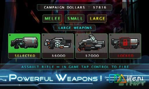 Future Mayhem - бандитские разборки! Квартал на квартал, район на район! Все серьезно и не до шуток! Много оружия разнообразят игровой процесс. А еще неплохие спец. эффекты придадут нужную атмосферу и настроение! Ваши кампании отличаются по сложности и никогда не повторяются - одинаковых боев не будет! Кроме того можно выбрать героя - 4 игрока - Панк, Ниндзя, Киборг или Солдат. Оружие делится на категории по дальности попадания - ближние, средние и дальние. Остается дело за малым - разобраться (что не сложно), пристреляться, выбрать оружие по душе и обстановке, и - в бой! Скажите "Прощай" уличным конкурентам!