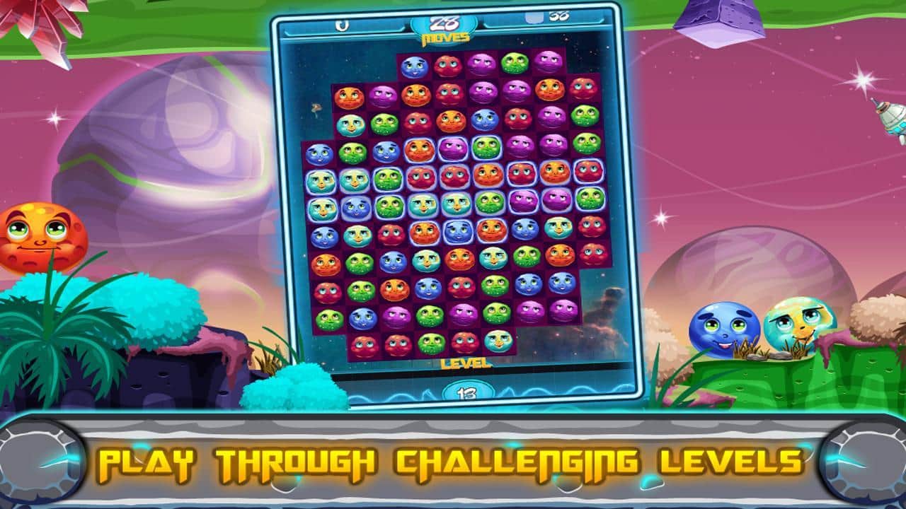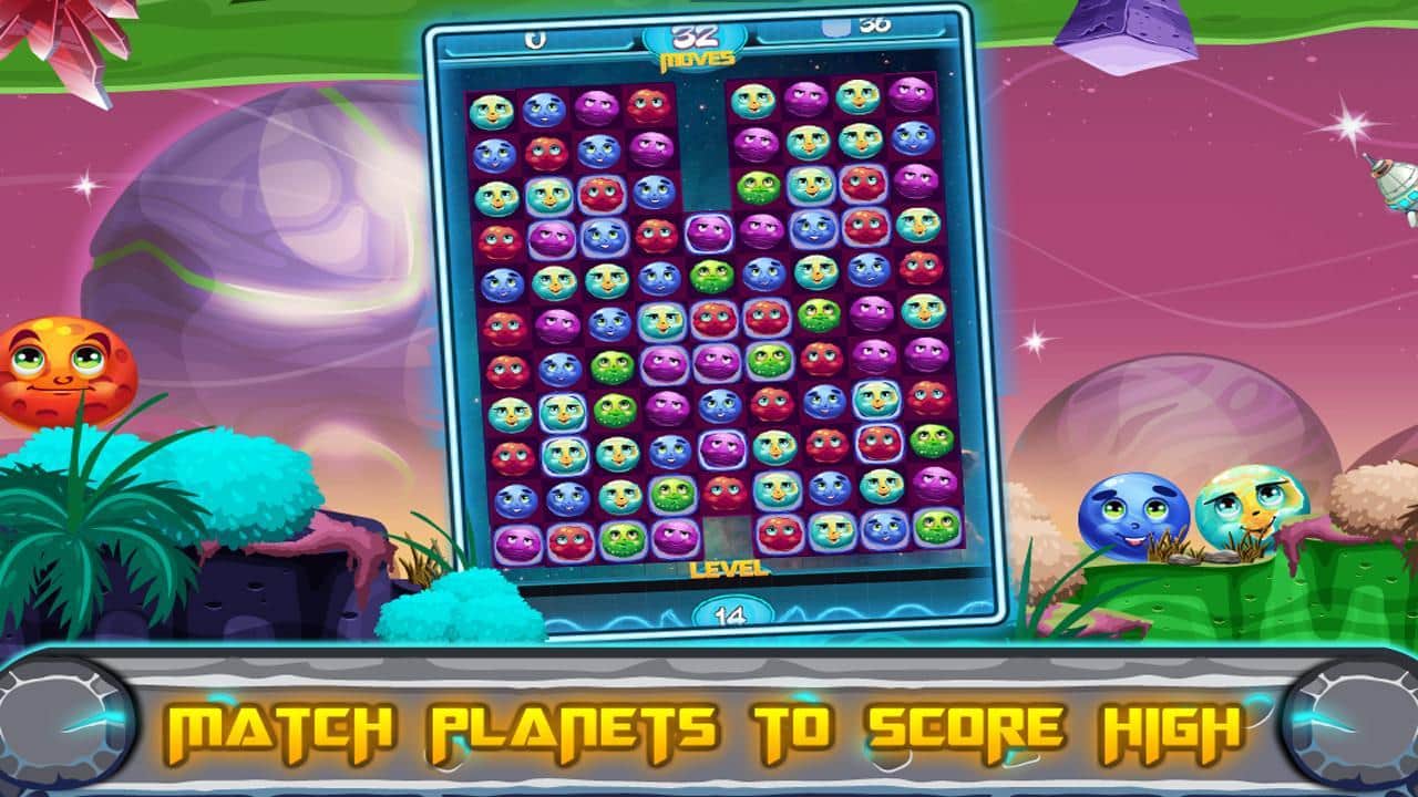 Galactic Burst - Match 3 Game – игра из жанра три в ряд, где вы будете путешествовать по огромной космической галактике, и сортировать в ряды планете. Составляйте длинные цепочки из разноцветных планет и взрывайте их, решая непростые задачки. Применяйте всю свою логику и наблюдательность в этой игре, чтобы заработать как можно больше очков и полезных усилений. Старайтесь формировать планеты в длинные цепочки и наслаждаться красивыми взрывами. Запускайте в действие цепные реакции и получайте рекордное количество бонусов. Впереди вас ждет множество красивых уровней, большое разнообразие планет и неповторимые усиления.
