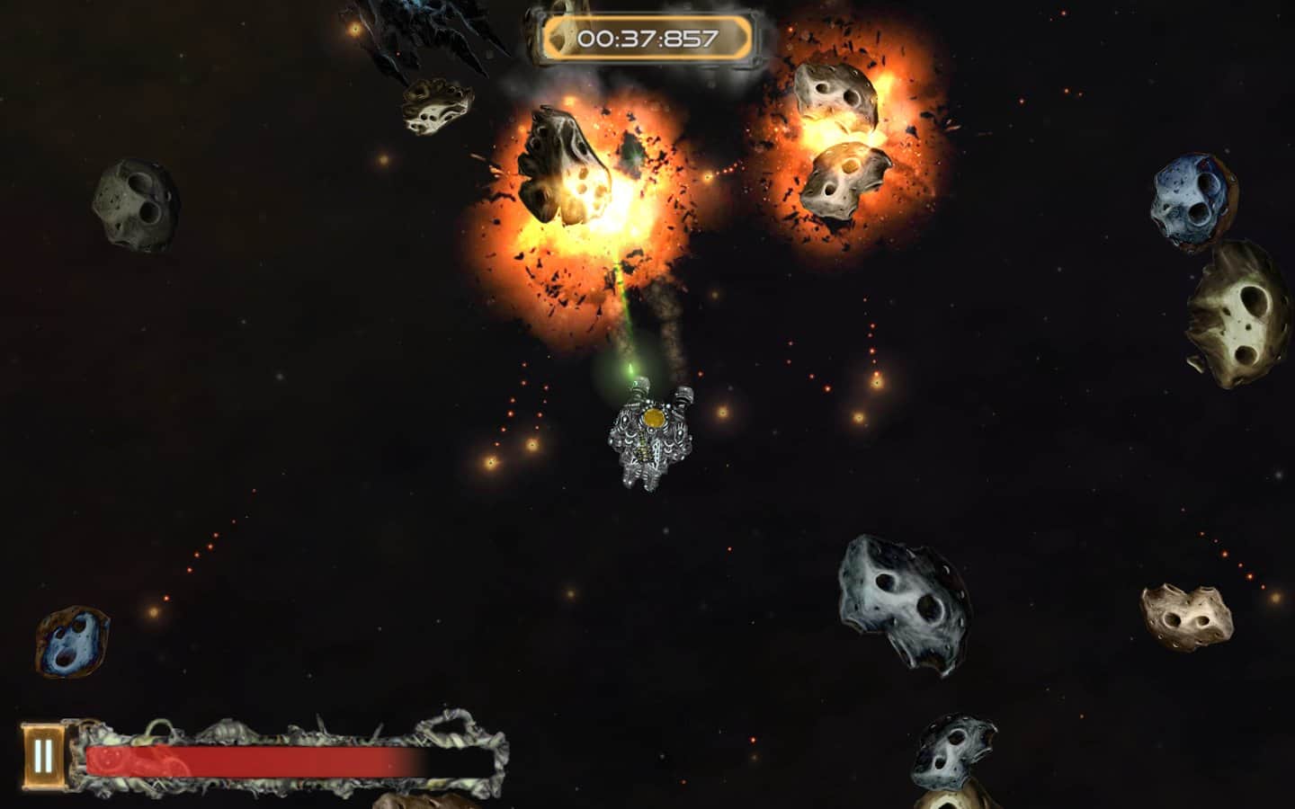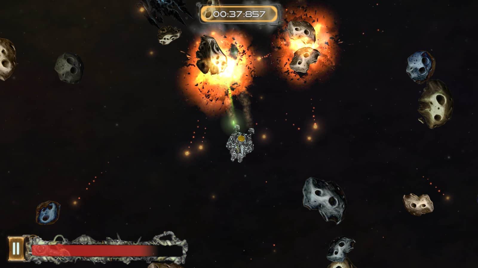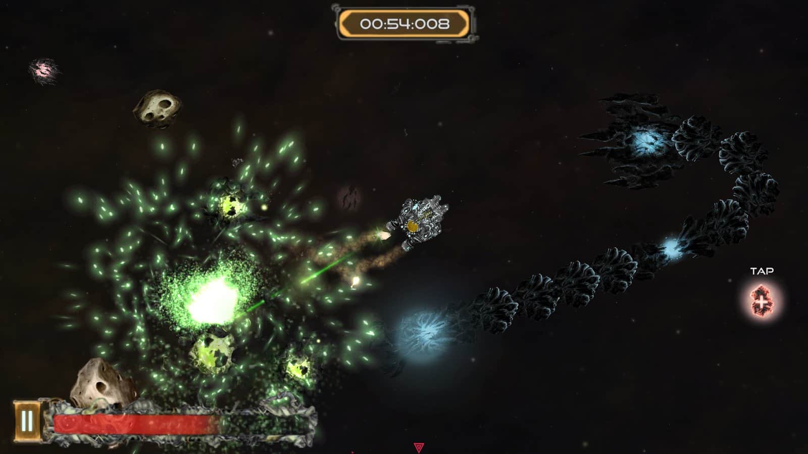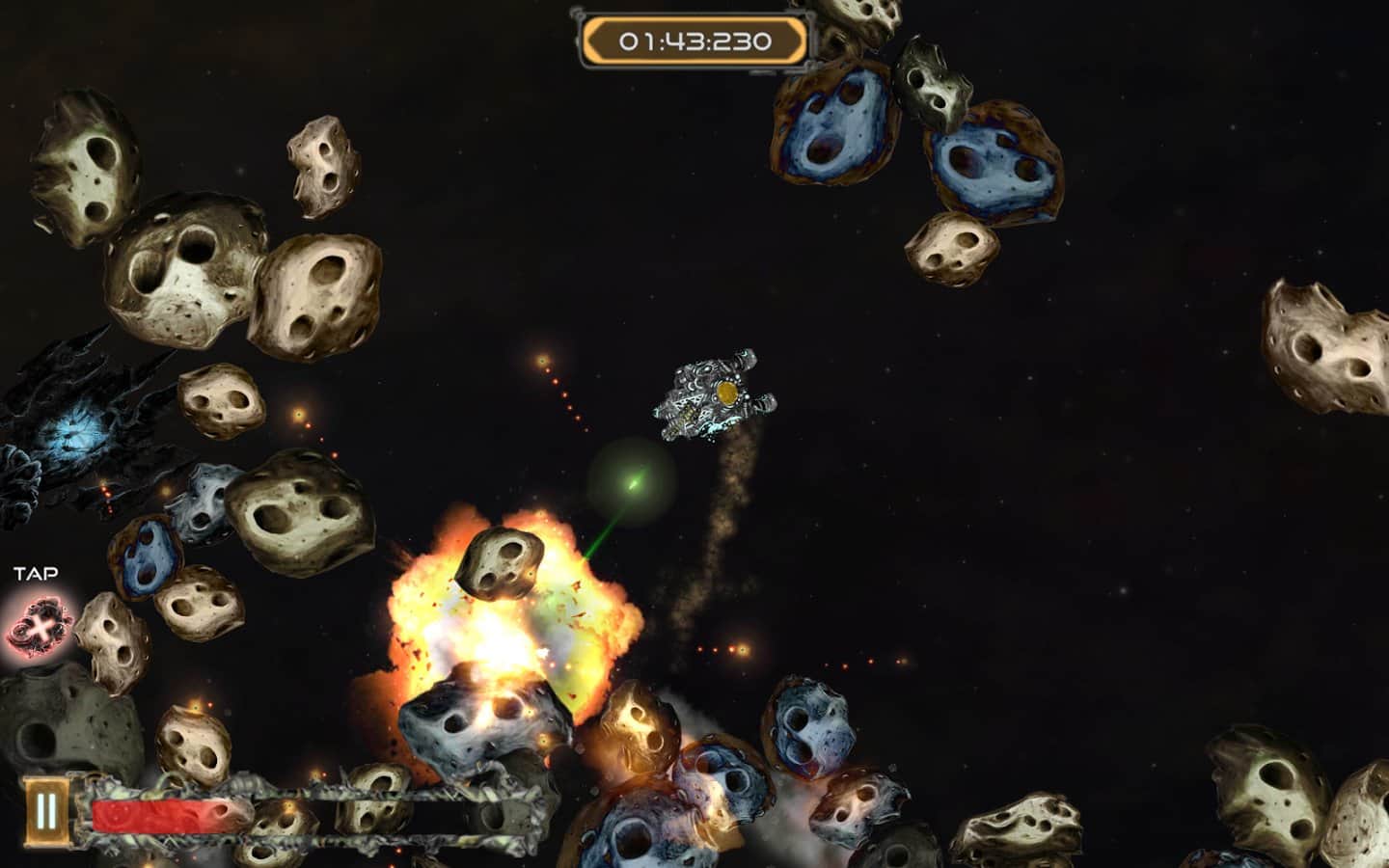 Galactic Junk - Shoot to move! – игра на андроид, которая порадует игроков отличной физикой. В этой игре вы возьмете под свой контроль небольшой космический корабль, у которого сломался двигатель и чтобы продолжить свое движение до базы вам предстоит воспользоваться своим оружие за счет силы отдачи которого, вы сможете продолжить свое движение по галактике. Совершайте выстрелы и двигайтесь в противоположном направлении, также с помощью турели уничтожайте врагов, астероиды и другие многочисленные препятствия. Вращайте свое оружие в разные стороны и двигайтесь к указанной цели. По ходу игры улучшайте свое оружие и другие системы корабля, добиваясь наилучших результатов.