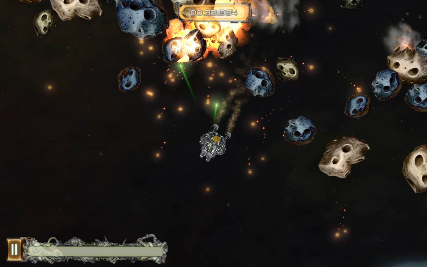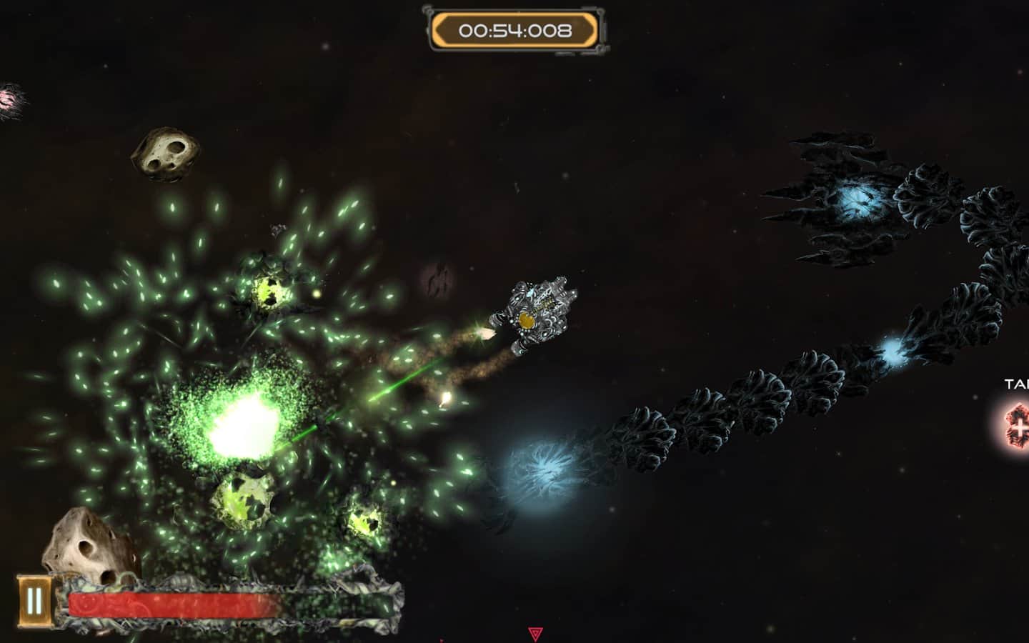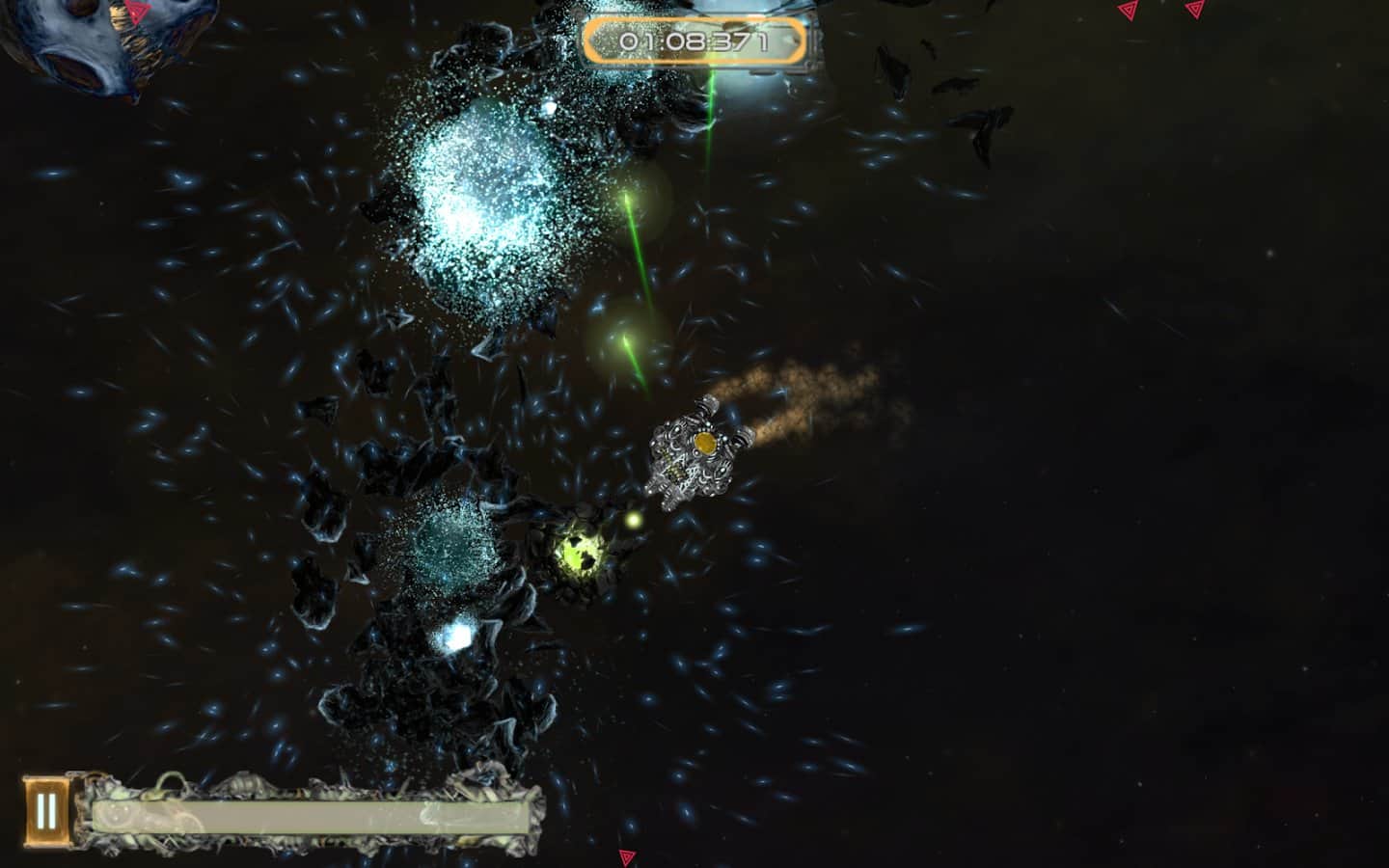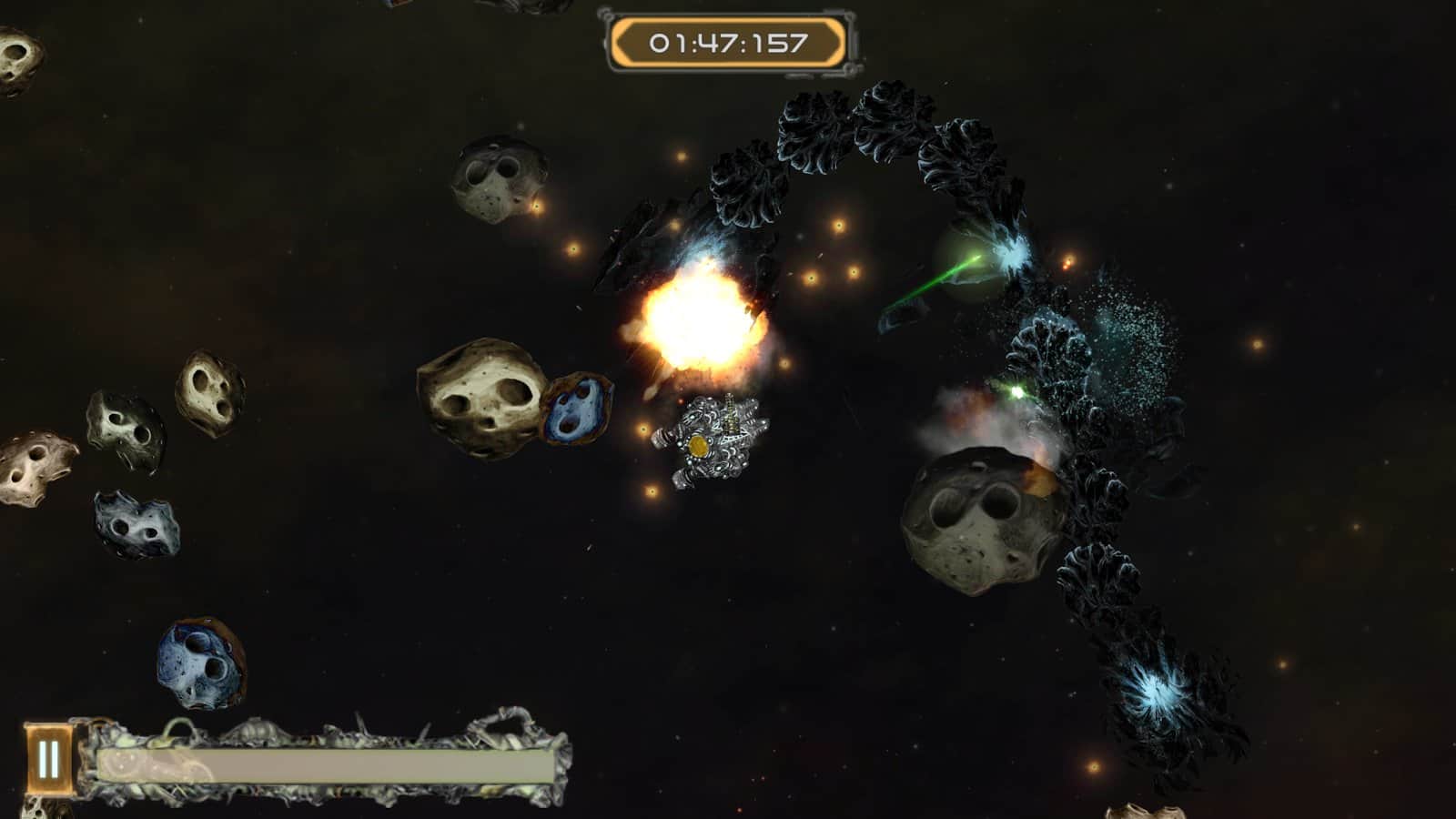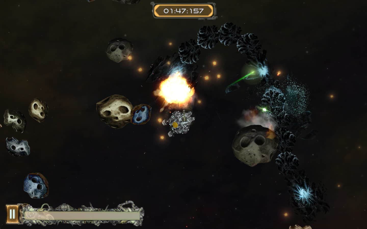 Galactic Junk - Shoot to move! – игра на андроид, которая порадует игроков отличной физикой. В этой игре вы возьмете под свой контроль небольшой космический корабль, у которого сломался двигатель и чтобы продолжить свое движение до базы вам предстоит воспользоваться своим оружие за счет силы отдачи которого, вы сможете продолжить свое движение по галактике. Совершайте выстрелы и двигайтесь в противоположном направлении, также с помощью турели уничтожайте врагов, астероиды и другие многочисленные препятствия. Вращайте свое оружие в разные стороны и двигайтесь к указанной цели. По ходу игры улучшайте свое оружие и другие системы корабля, добиваясь наилучших результатов.