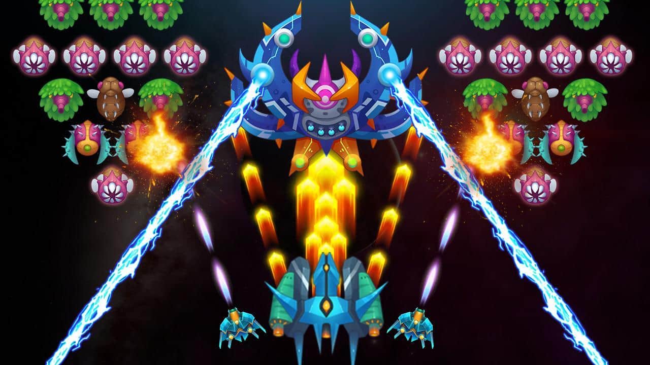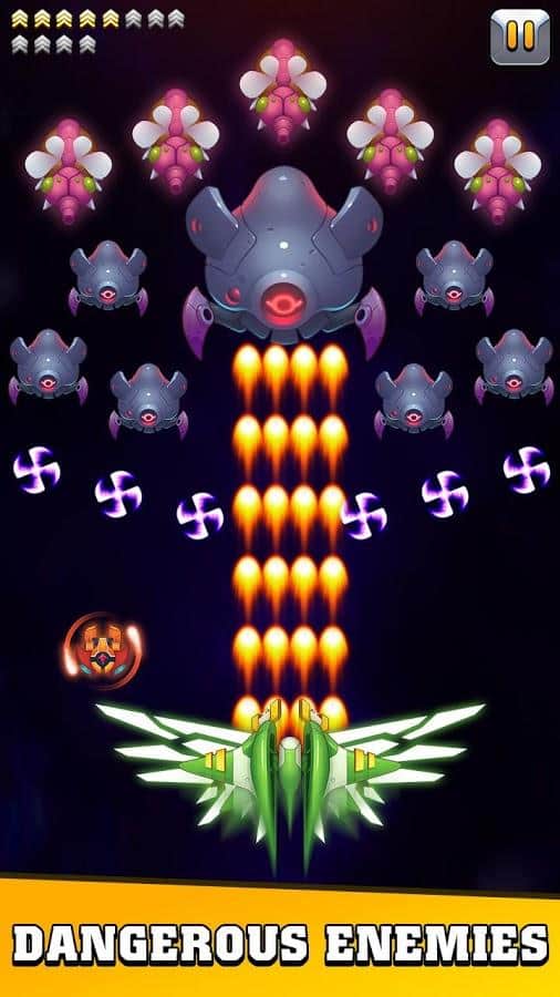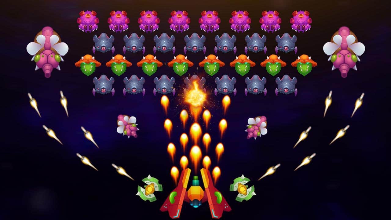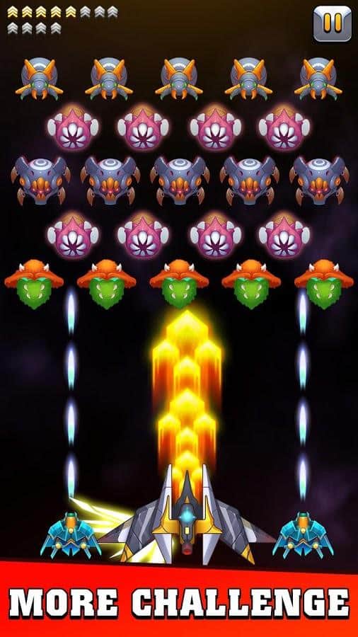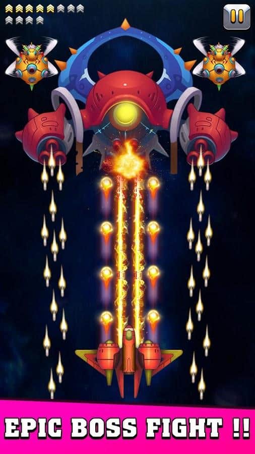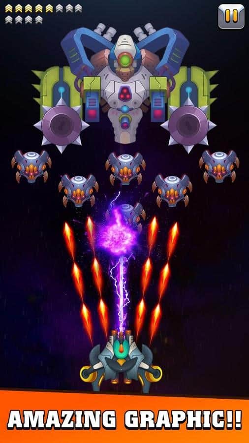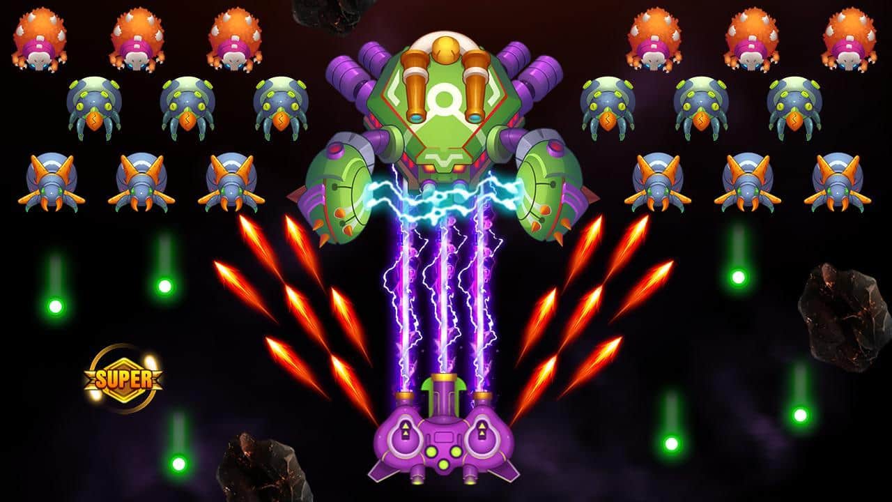 Galaxy invader : infinite shooting – скролл-шутер на андроид, где вы будете спасать мир от уничтожения. Вашу планету атакуют инопланетные монстры и сильные боссы и вашей задачей будет взять под свой контроль космический корабль и дать бой многочисленным врагам. Управляйте своим кораблем и ведите бесконечную стрельбу по врагам. Убивайте монстров и защитите свою галактику от захватчиков. Прокачивайте и улучшайте свой космический корабль по ходу игры и добивайтесь отличных результатов готовясь к битве с сильными боссами которых не просто будет победить. Открывайте для себя новые космические корабли и наслаждайтесь динамичным игровым процессом.