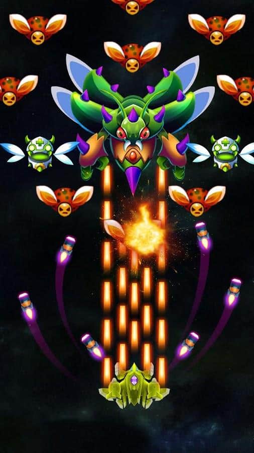 Galaxy Invader: Infinity Shooter Free Arcade Game – классический шутер на андроид, где вы будете защищать галактику от вторжения. Нашу планету пытаются захватить инопланетяне и вы являетесь последней надеждой человечества на спасение. Возьмите под свой контроль космический корабль и найдите способ победить всех космических монстров. Обновляйте и прокачивайте свой космический корабль готовясь к постоянному возрастанию количества врагов. Ведите непрерывный огонь по врагу и выполняйте многочисленные миссии и задания игры. Перемещайте космический корабль по экрану и избегайте столкновения с преградами.