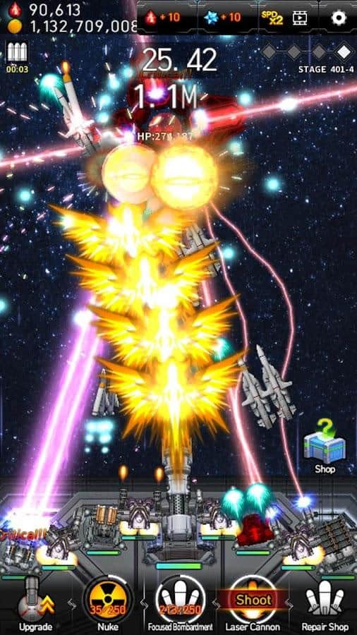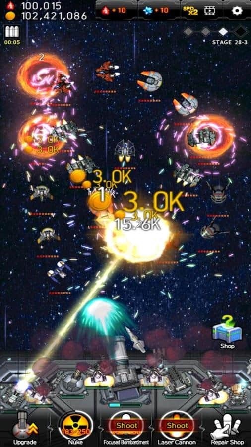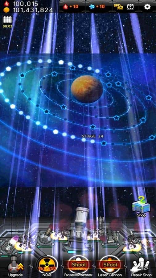 Galaxy Missile War - захватывающий кликер на Android. В этой игре вы окажетесь за штурвалом космического корабля. Вашей целью будет уничтожение вражеских кораблей и ракет. В Galaxy Missile War стратегические улучшения имеют огромное значение на поле боя. Вас ждет более 100 новых юнитов и оружия, более 100 вражеских персонажей и 32 астрономических пушки и безграничные улучшения. А киноподобная и визуально динамичная игровая графика порадует глаз