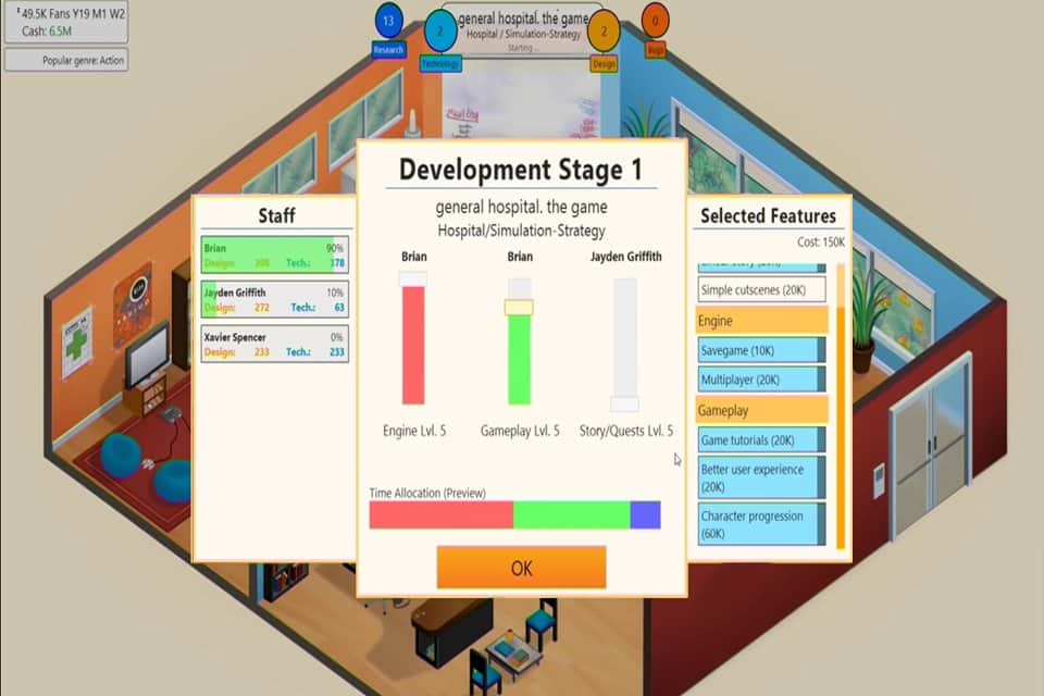 Game Dev Manager Tycoon - бизнес симулятор в котором вам предстоит взять под свое управление небольшую студию по разработке игр и постараться развить ее до предприятия мирового уровня. У вас будет возможность одновременно нанимать более сотни работников, владеть десятком филиалов и выполнять массу заказов в один заход. Помимо технической стороны проекта вам необходимо тщательно следить за экономической составляющей, ведь Game Dev Manager Tycoon это еще и экономическая стратегия.