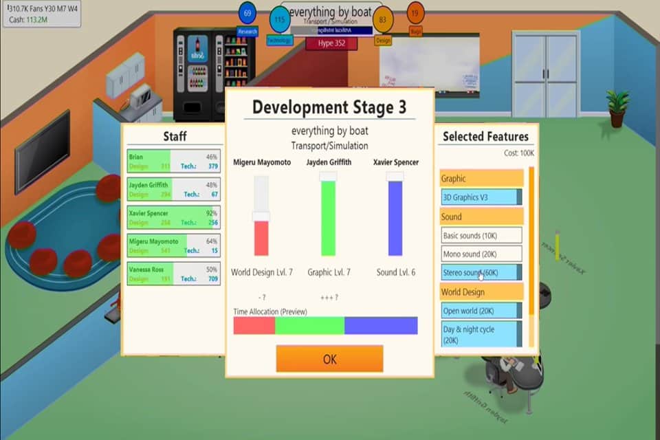 С уверенностью могу сказать, что данная игра является ужаснейшим продуктом, который представляет собой исключительно порт Game Dev Tycoon, который выдаёт себя за отдельный продукт, который даже не запускается.