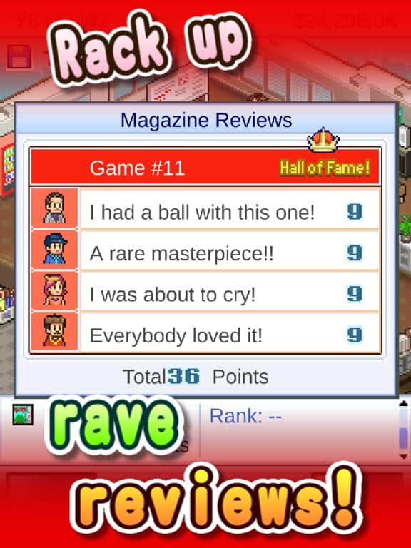 Game Dev Story+ - Пока конкуренция еще совсем мала, пора заняться делом и начать продвигать свой новый бизнес — игровую студию. Купите помещение, украсьте его и поставьте все необходимые вещи для начала работы, а затем возьмите трудолюбивых программистов, звукорежиссеров, аниматоров, иллюстраторов, дизайнеров, маркетологов, таргетологов и других специалистов для создания лучших игр на большом рынке. Регулярно просматривайте обзоры в журналах и анализируйте, какие действия еще нужно сделать, чтобы улучшить свой продукт.