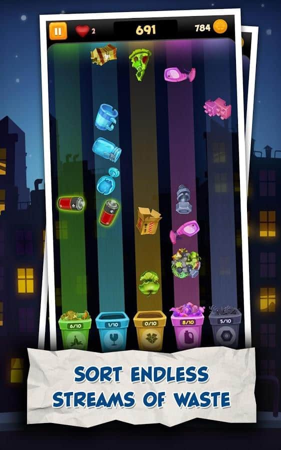 Garbage Hero – сортировка мусора – это довольно кропотливый и сложный процесс. Главное в нём ловкость рук и быстрая реакция. Только вы зазевали и часть мусора будет нераспределённая, а это ой как плохо. Вы должны быть быстрее молнии. Сортируйте мусор по его различным видам. Каждый вид мусора отправляйте в свой собственный мусорный бак. Давайте сделаем так чтобы наша планета была хотя бы чуточку чище. Чем лучше ты работаешь. Тем больше шансов попасть на новые этапы. В которых будут открыты новые виды отходов. Можете принять участие в соревнованиях на лучшего сортировщика мусора.