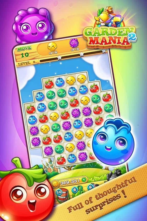 Garden Mania 2 - Продолжение одной из самых красивых головоломок на андроид. Эта игра получила более разнообразный геймплей и еще более интересные уровни. Но это так и остается классическая головоломка по типу три в ряд. Во второй части разработчик решил разнообразить игру фруктами. Собирайте урожай с помощью комбинаций, соединяя одинаковые овощи одной внешности. А почему внешности? Да потому что в игре есть одинаковые фрукты, но они имеют разный окрас.