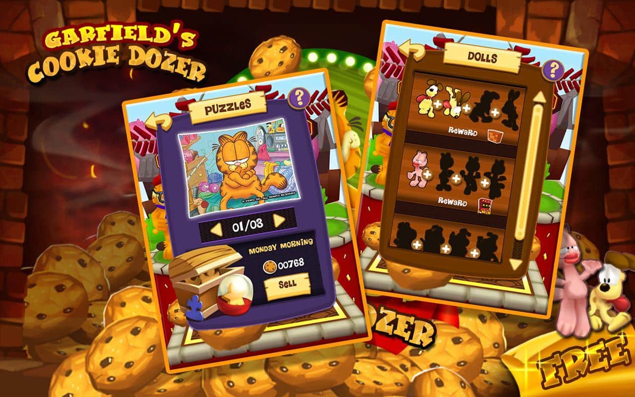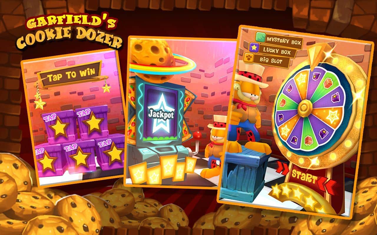 Garfield Cookie Dozer - Гарфилд вышел на новый уровень! Теперь он играет в игровые автоматы. Но главным достоинством для него конечно же еда. Он будет играть не на монеты, а на сладкий и сочные плюшки. В игре собрано большое количество различных игровых автоматов и различных лотерей. Цель игры очень проста, наберите максимальное количество плюшек, чтобы заработать максимальные очки.