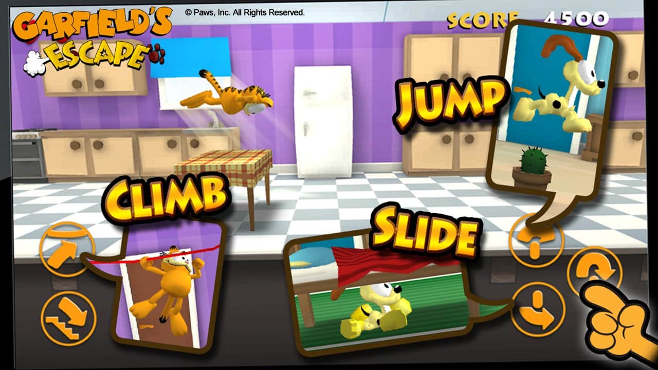 Garfield's Escape Premium - игра на аndroid, в которой вам необходимо помочь Гарфилду и Оди убежать от робота. Их хозяин решил что им надо помыться и купил робота, который сделает это за него. Но Гарфилд так не думает и начинает убегать. На его пути встречаются море препятствий, которые необходимо преодолеть, помогите ему в этом.