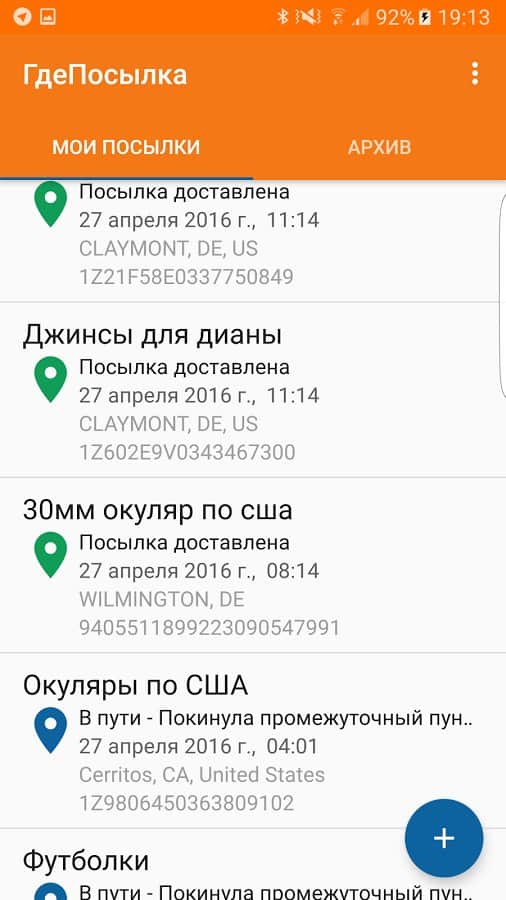 ГдеПосылка — это универсальная и удобная программа для отслеживания почтовых отправлений. Достаточно знать лишь трекинг-номер, чтобы легко найти посылку почти в любой точке мира. После ввода трек-кода, программа сама обнаружит перевозчика и в автоматическом режиме начнет отслеживать перемещение Вашей посылки и присылать Вам уведомления об изменении ее статуса. Программа поддерживает более 100 почтовых служб: официальные почты России, Беларуси, Китая, Гонконга, Сингапура и другие.