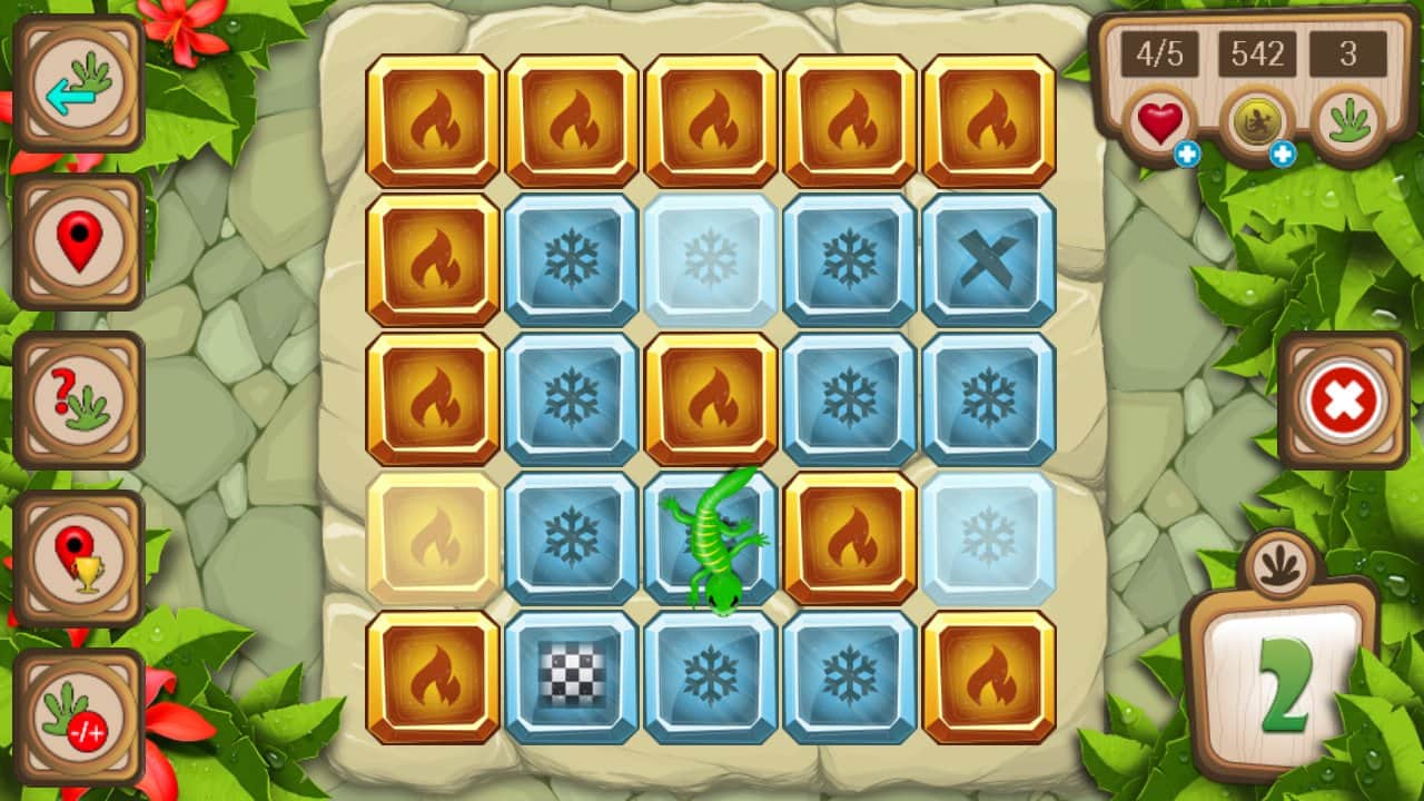 Gecko the Game – увлекательная игра-головоломка на андроид, которая отлично подойдет для всей семьи. В этой игре вы будете помогать геккону, преодолевать сложные препятствия на пути к дому. В игре перед вами окажется поле, на котором находятся многочисленные блоки, вашей задачей будет передвигаться по ним и разрабатывать свою тактику, чтобы как можно быстрее преодолеть горячие поля и прохладные тени. Впереди вас ждут более 60 уровней, где вы сможете воспользоваться учебником и подсказками, чтобы быстрее пройти их и освоится в игре.